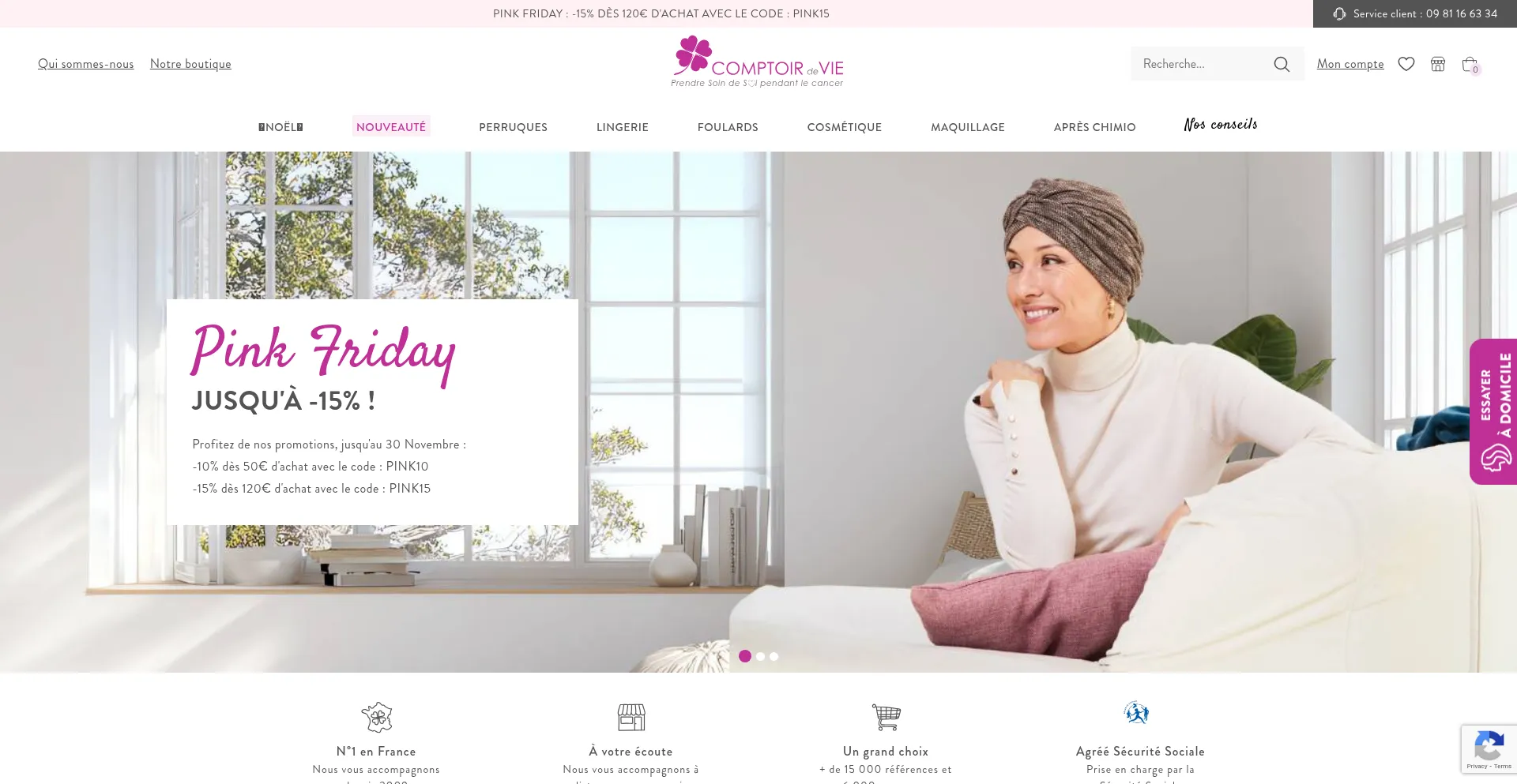 N°1 des produits et accessoires pour le bien être des personnes atteintes d'un cancer : large choix de turbans, foulards chimio, perruques, lingerie spécialisée, cosmétique...