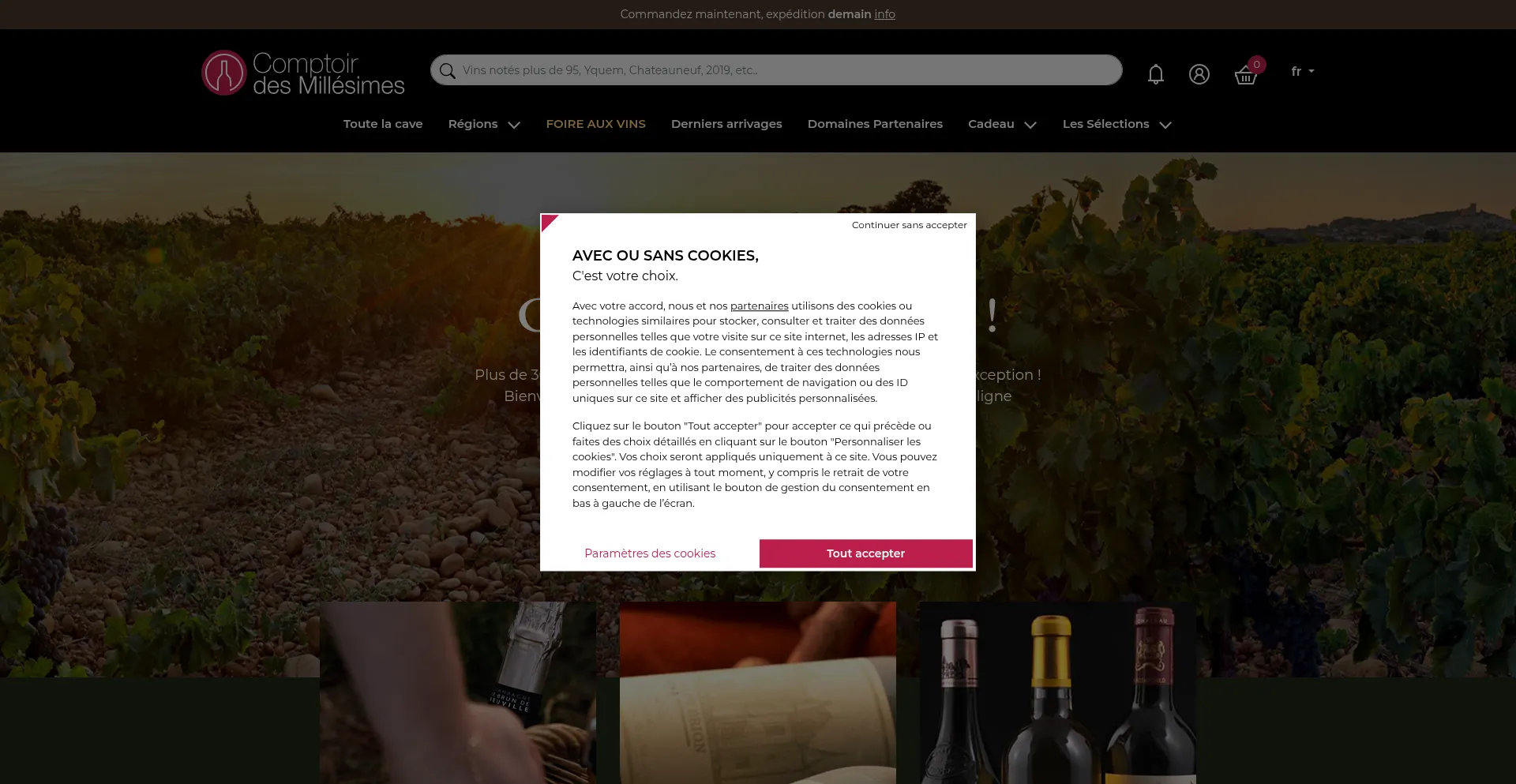 The comptoirdesmillesimes.com website uses Google Tag Manager to add and update tracking tags on its website.