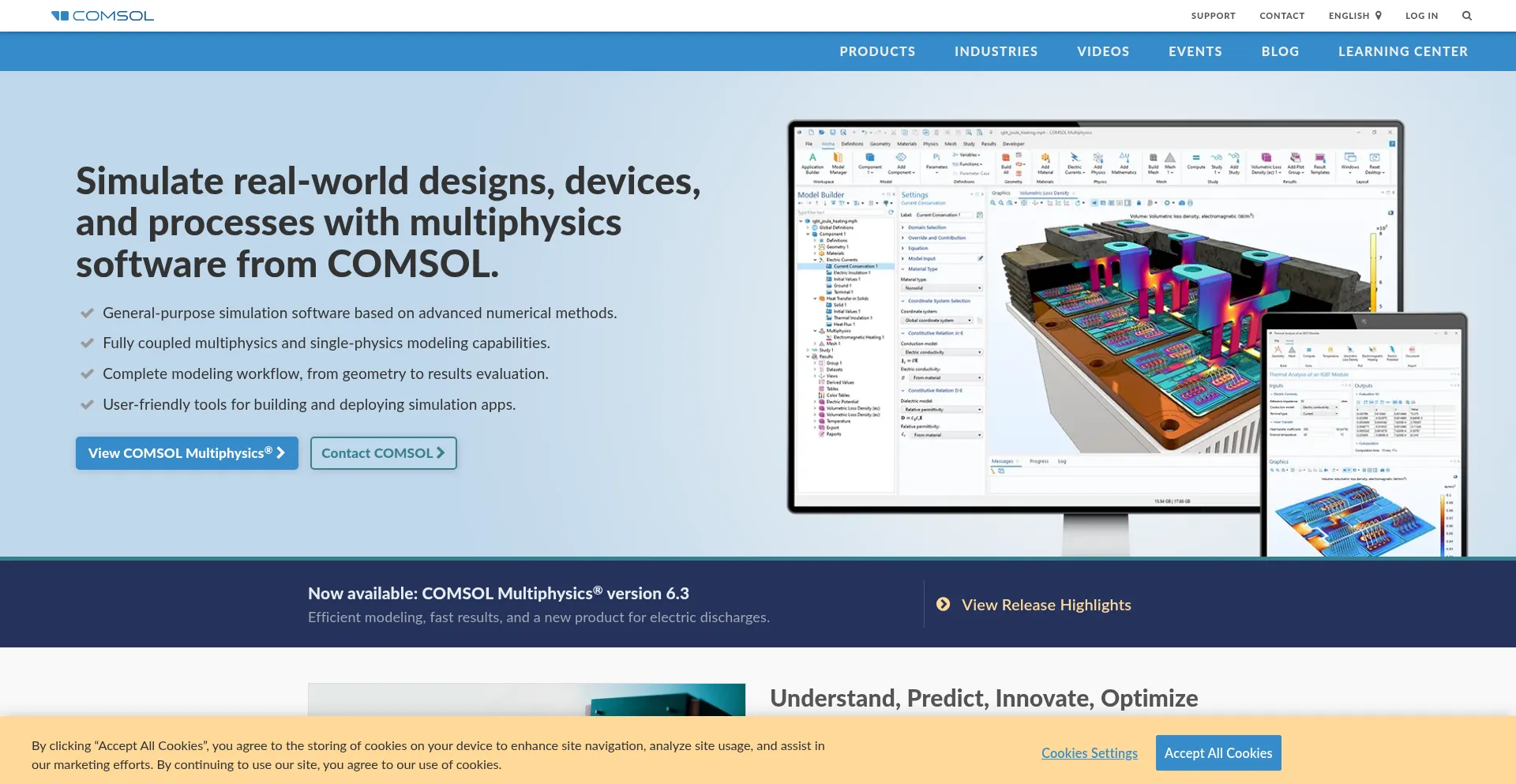 COMSOL develops multiphysics software used by engineers and researchers to simulate real-world designs, devices, and processes across industries.