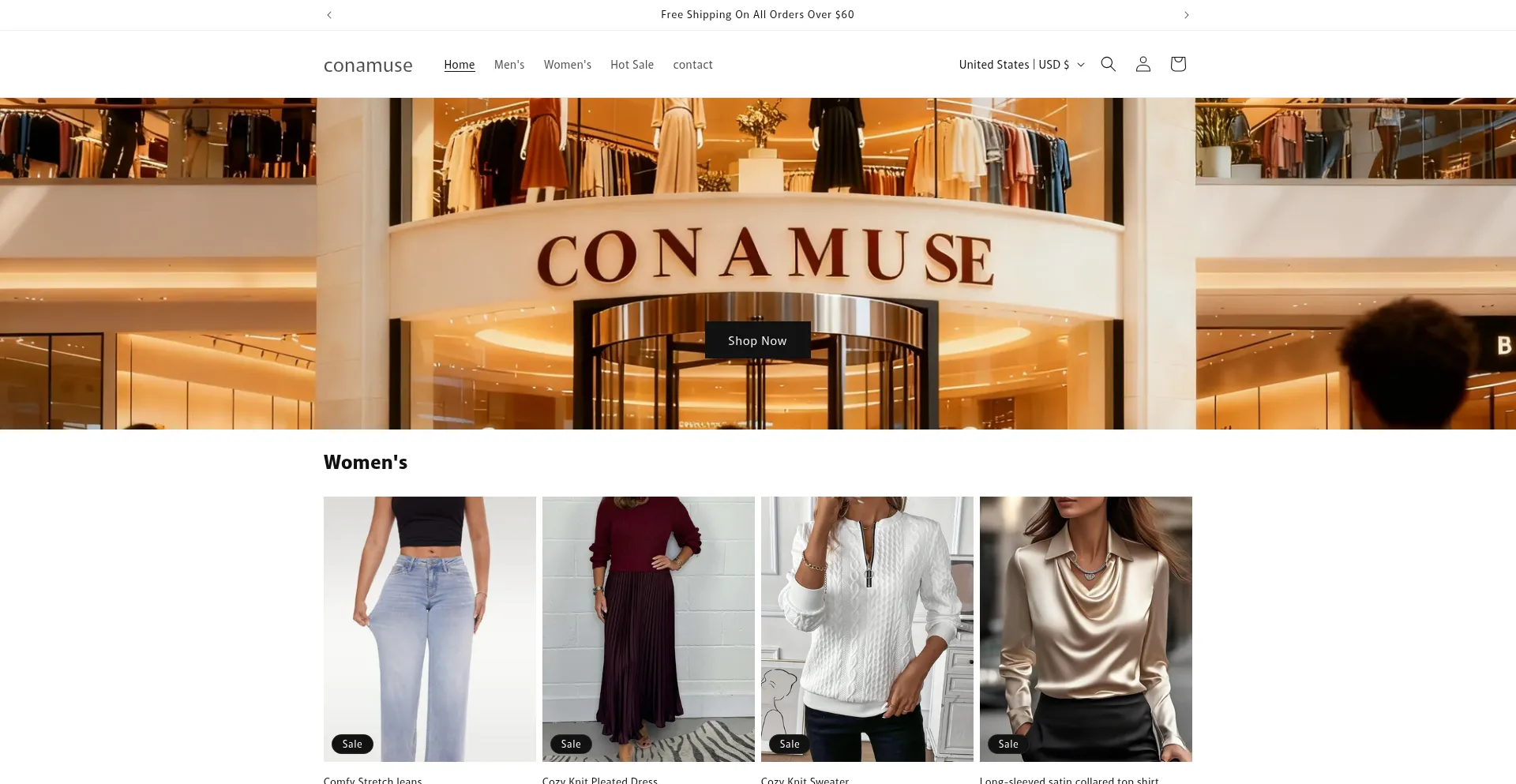 The conamuse.com website utilizes free e-commerce platform solutions, which may indicate cost-conscious operations but could also suggest limitations in security features, customer support, or advanced functionality compared to enterprise-grade solutions.