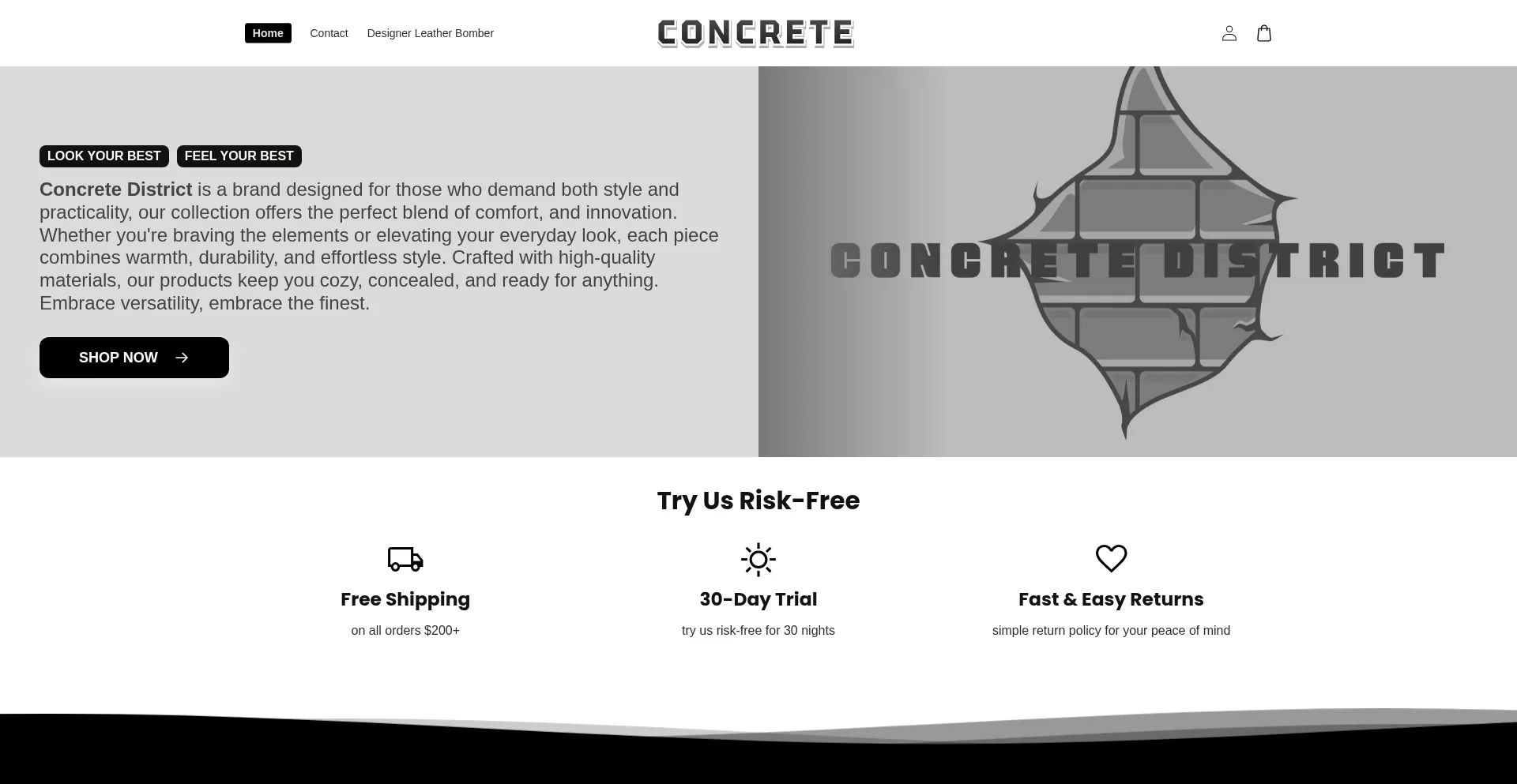 Our analyzer determines that website concretedistrict.com is using Shopify CMS. Shopify is a popular e-commerce platform, powering around 4.4% of websites globally.