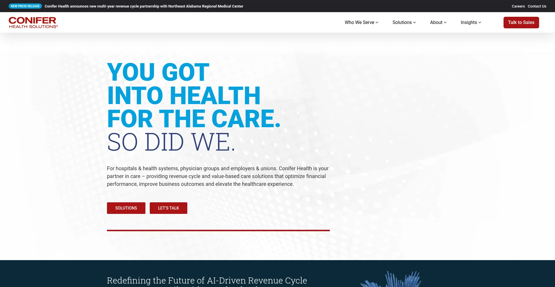 Conifer Health provides revenue cycle management solutions and value-based care offerings. We help healthcare optimize financial performance and outcomes.
