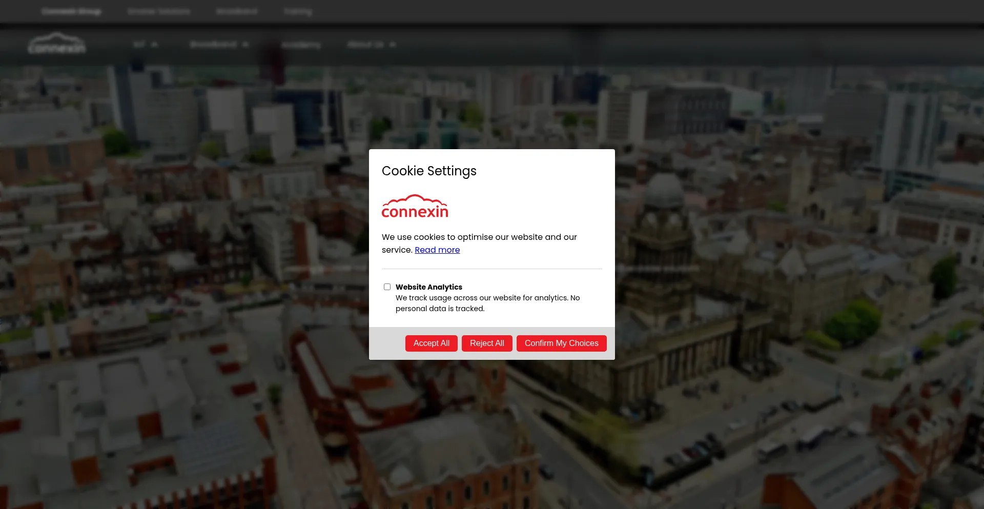 The website implements cookie consent mechanisms in compliance with privacy regulations such as GDPR or CCPA. This demonstrates that connexin.co.uk adheres to data protection standards and provides users with control over personal data collection practices.