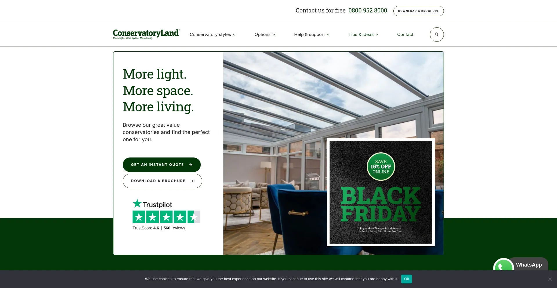 conservatoryland.com has a good Trustpilot score (4.6) based on 566 reviews, indicating a high level of trust from customers. It is a good sign of legitimacy!