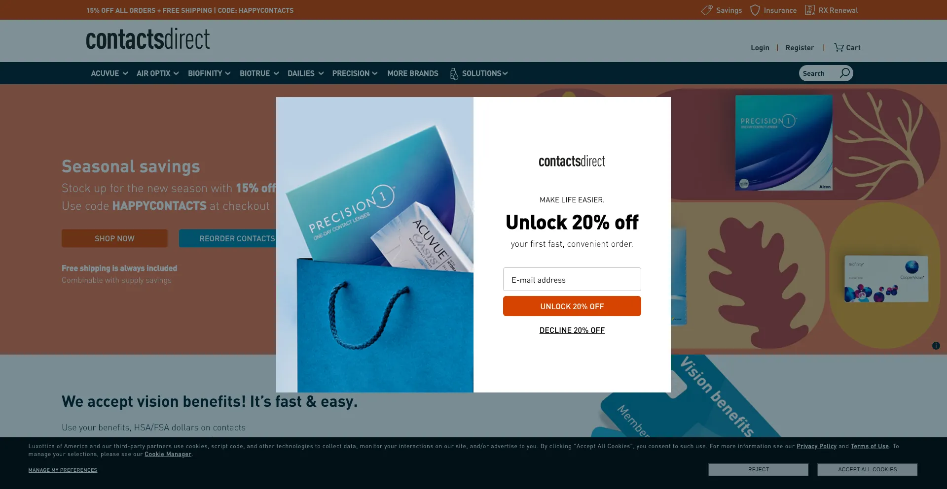 Order contact lenses online with or without insurance benefits with ContactsDirect. Save 100$ with Annual Supply and get 20% off on the first order.