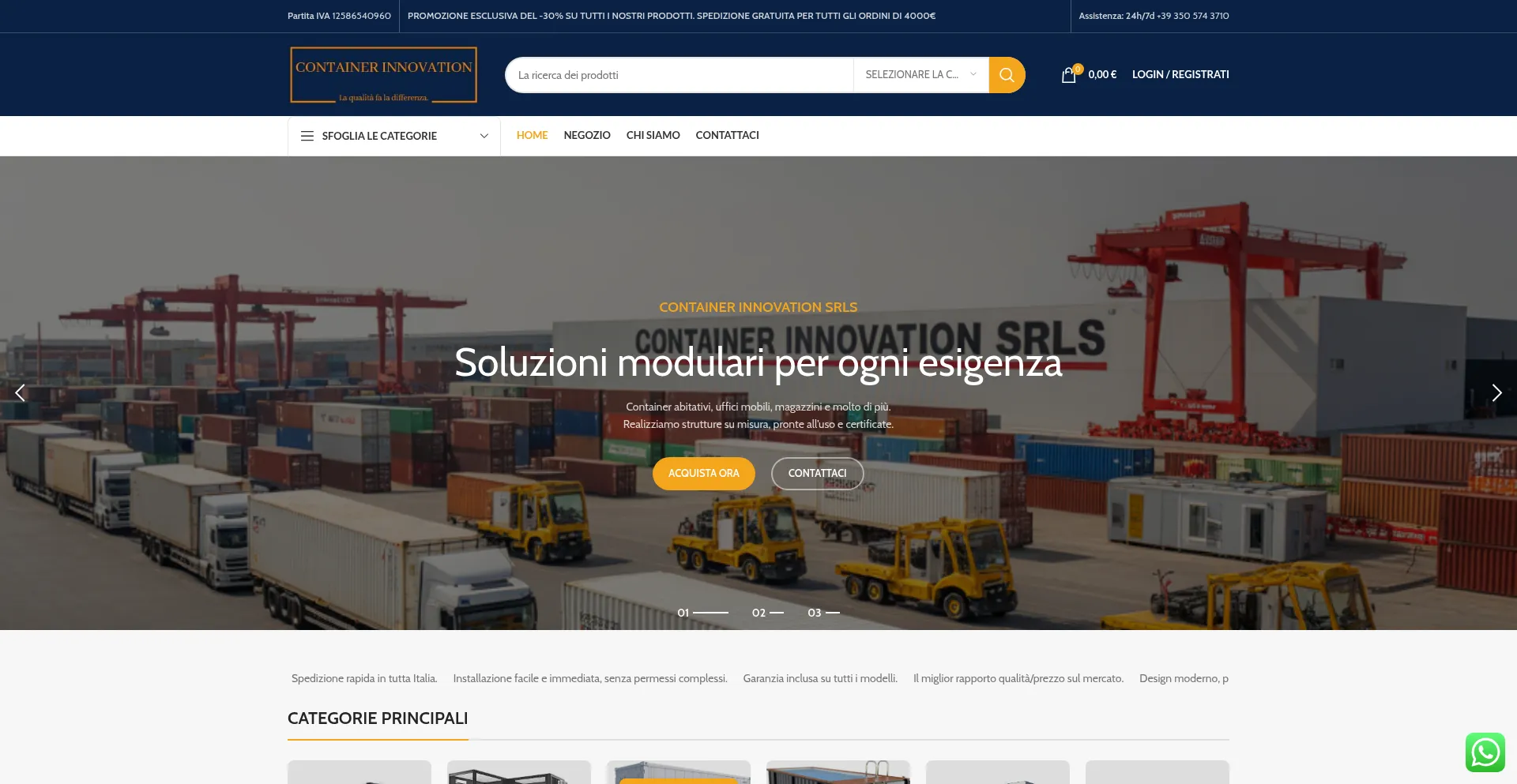 Scopri le nostre soluzioni modulari su misura: container marittimi, abitativi, sanitari, refrigerati e piscine. Qualità, sicurezza e rapidità al tuo servizio. Spedizione gratu...