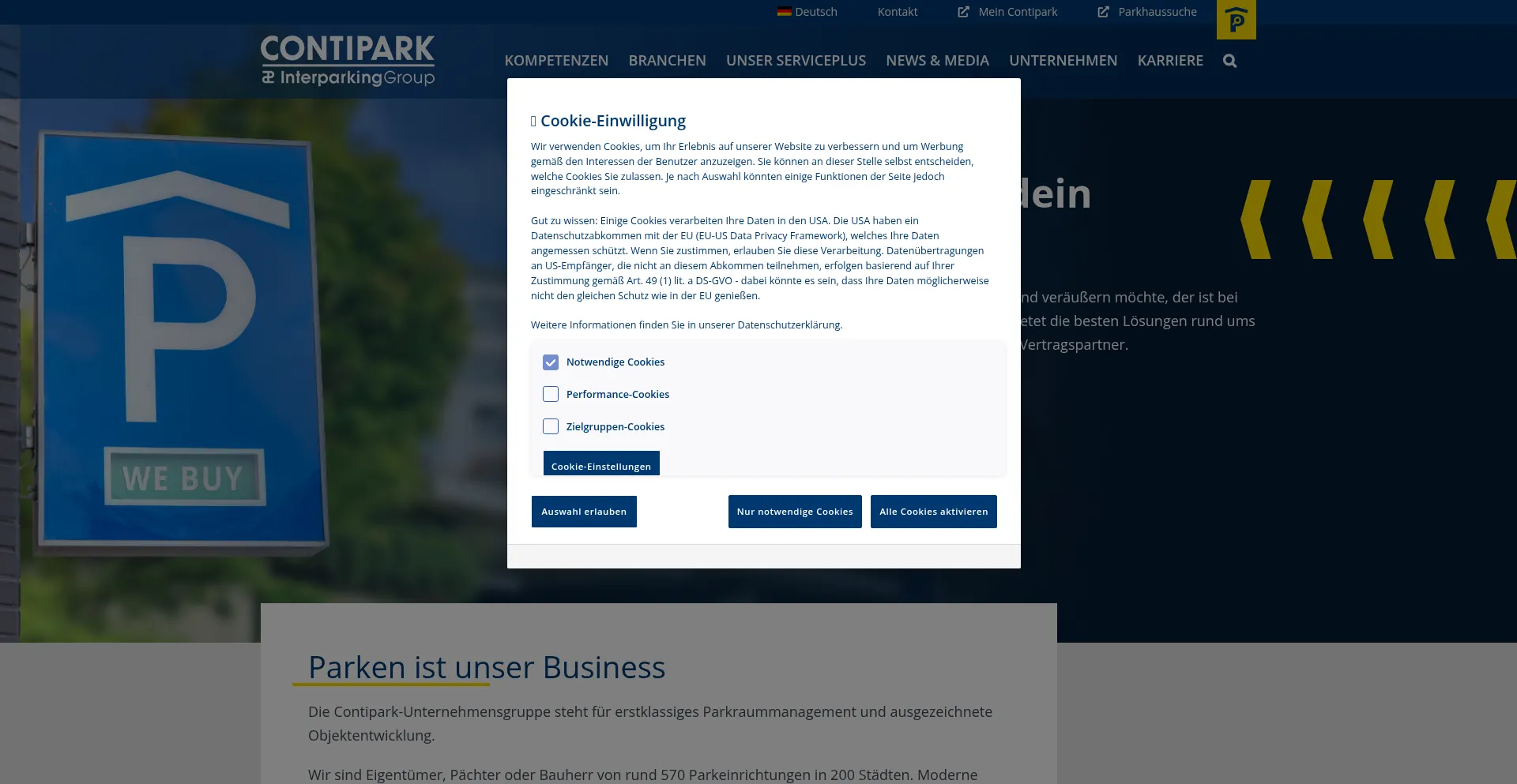 The website implements cookie consent mechanisms in compliance with privacy regulations such as GDPR or CCPA. This demonstrates that contipark.de adheres to data protection standards and provides users with control over personal data collection practices.