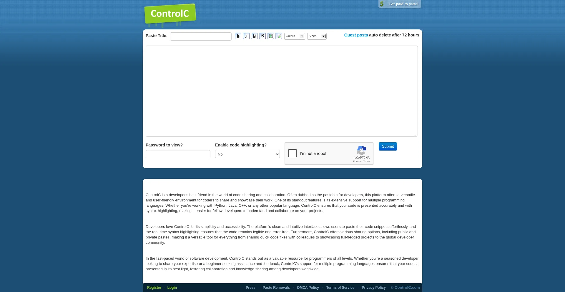 ControlC Pastebin - The easiest way to host your text