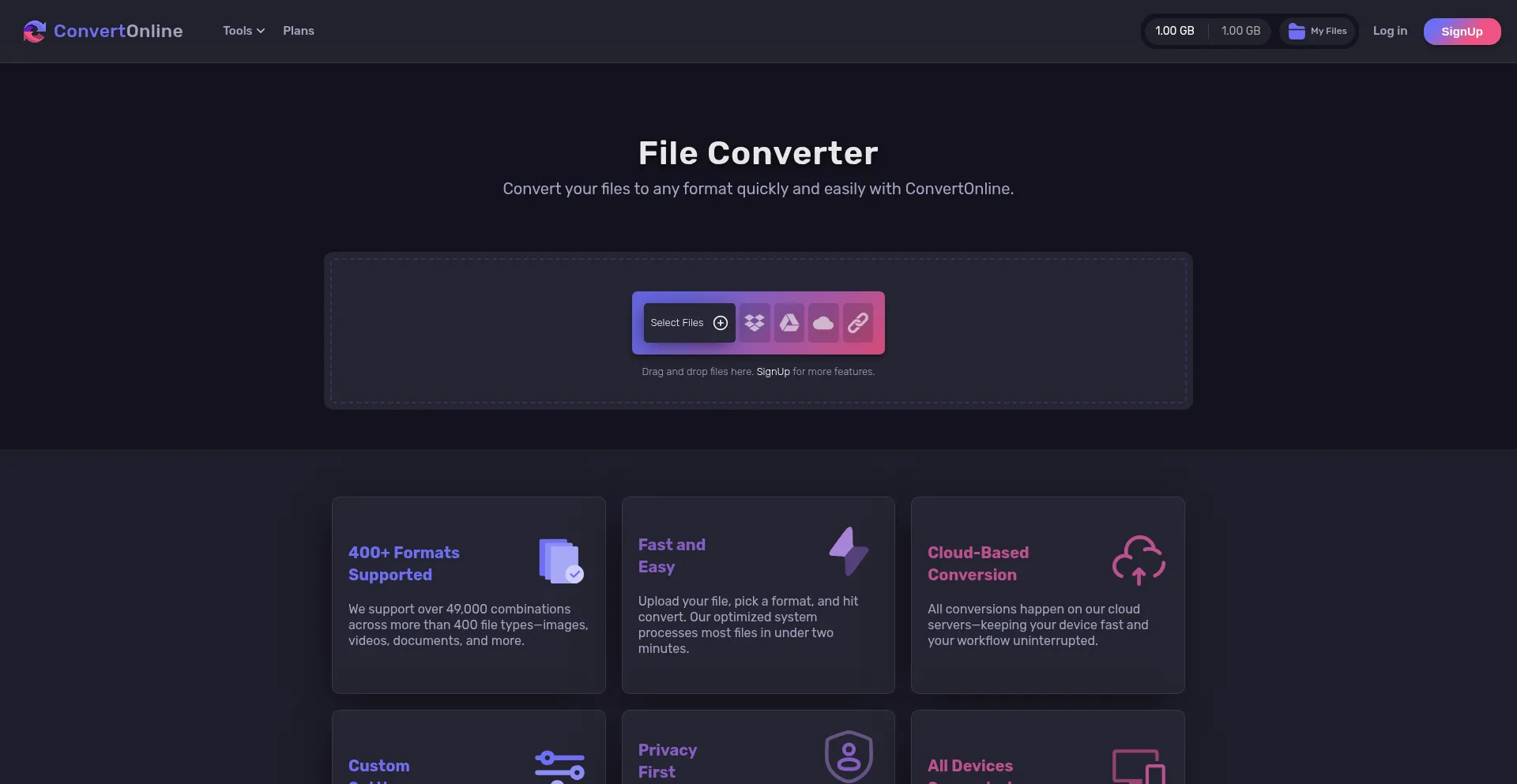 ConvertOnline lets you easily convert files to any format - fast, private, and secure. Convert your files online quickly and safely.