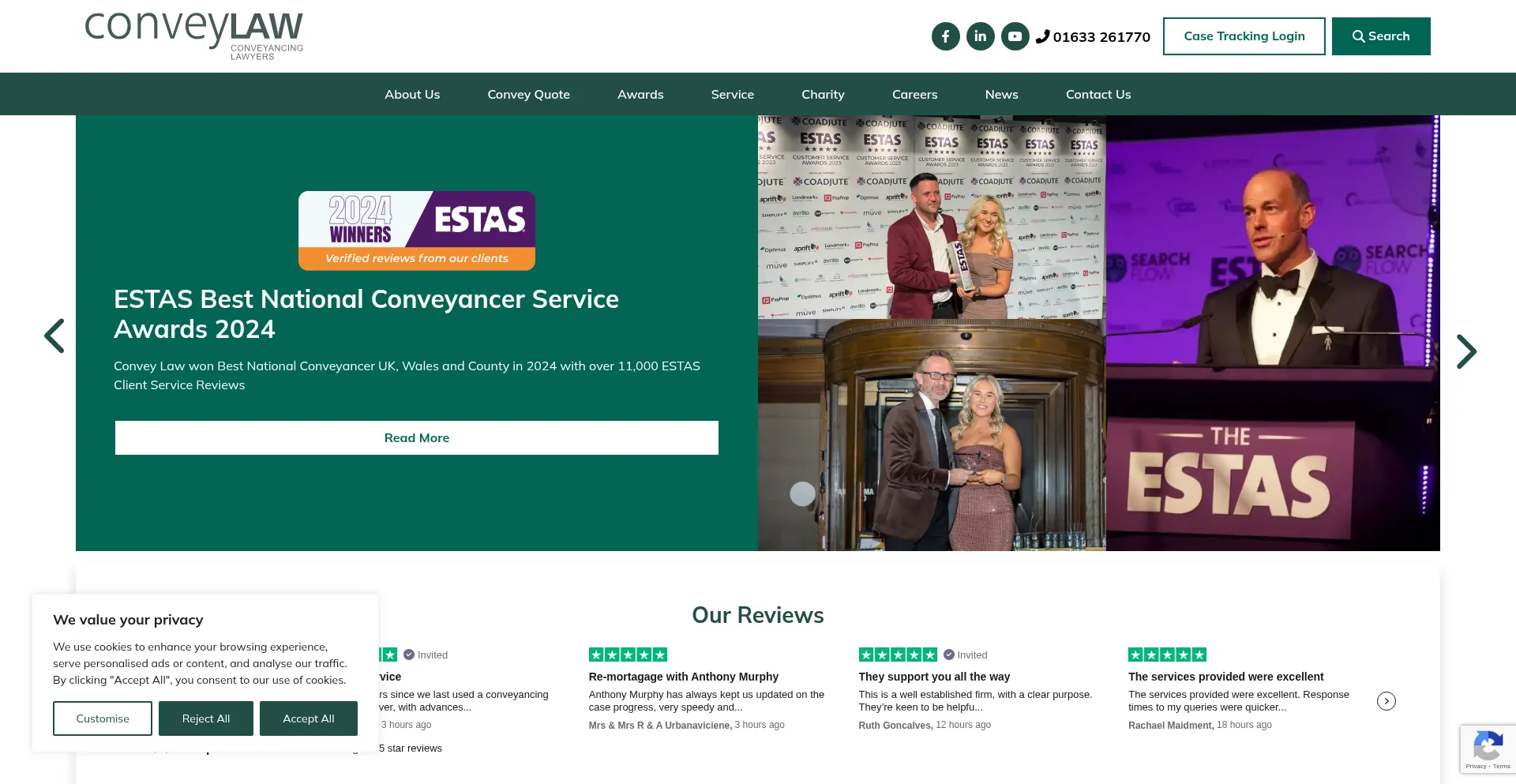 The website implements cookie consent mechanisms in compliance with privacy regulations such as GDPR or CCPA. This demonstrates that conveylaw.com adheres to data protection standards and provides users with control over personal data collection practices.