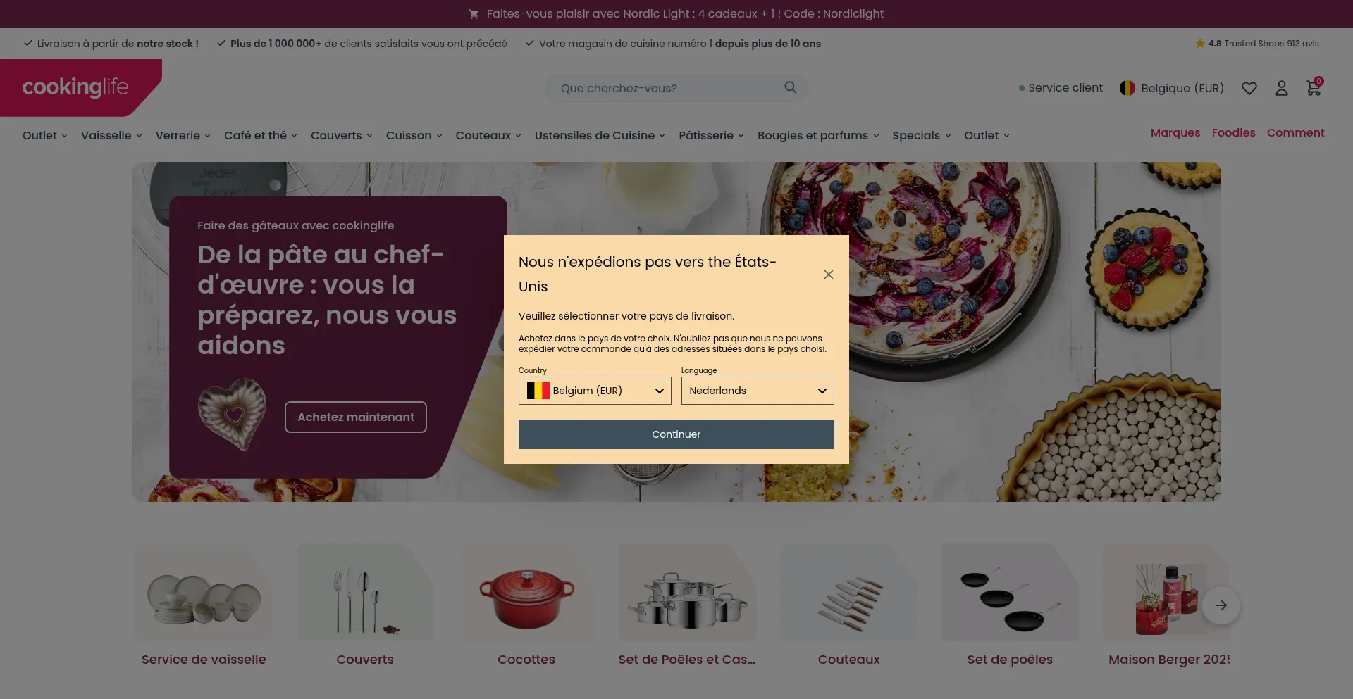 Magasin de cuisine Cookinglife propose des casseroles (sets), de la vaisselle (sets), des couverts (sets), de la verrerie, des couteaux (sets) de marque A et bien plus encore vi...