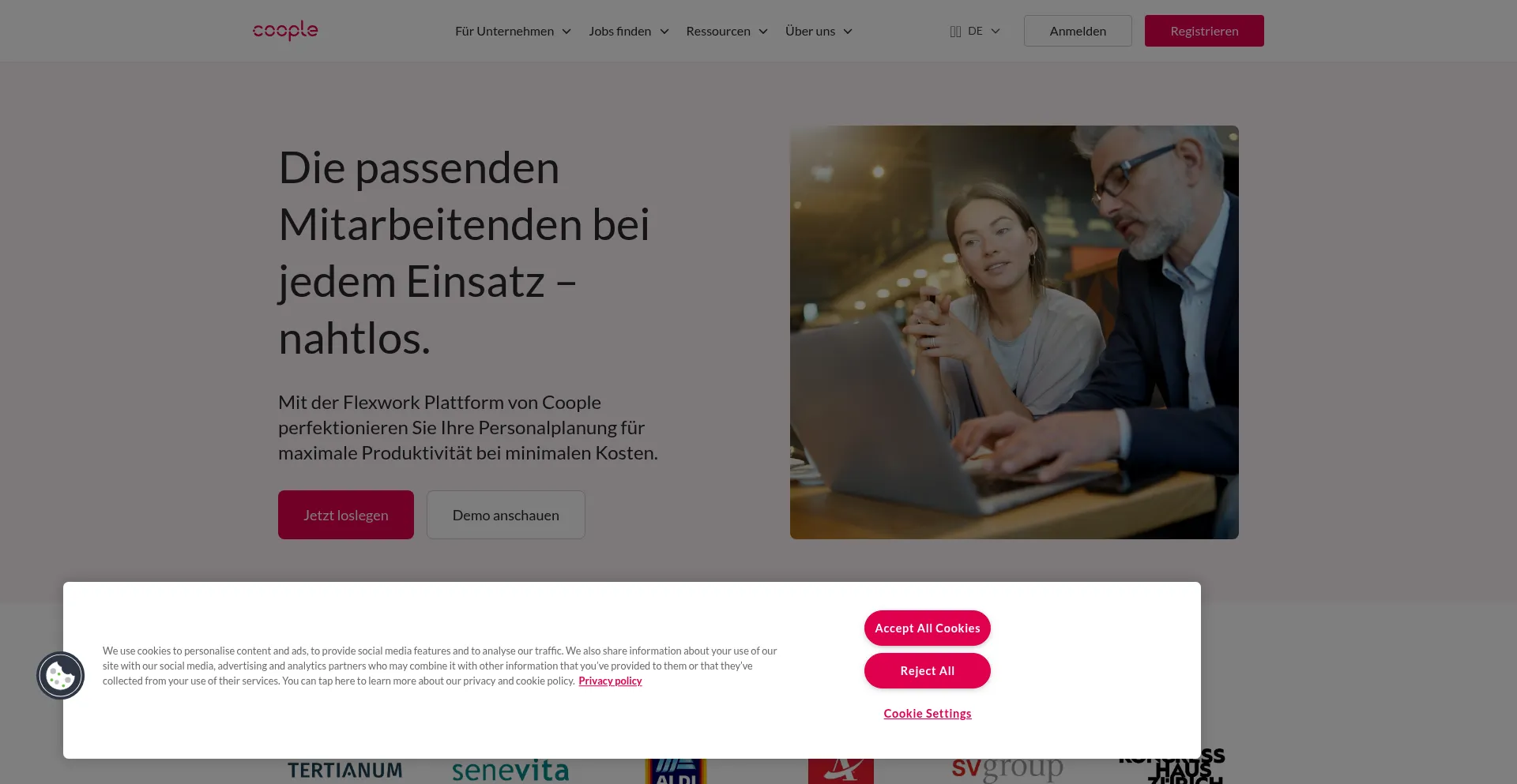 The website implements cookie consent mechanisms in compliance with privacy regulations such as GDPR or CCPA. This demonstrates that coople.com adheres to data protection standards and provides users with control over personal data collection practices.