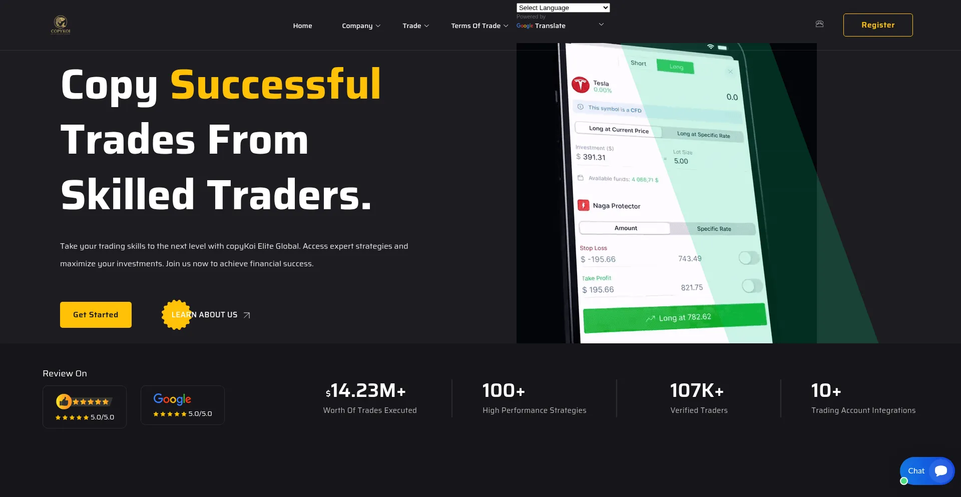 copyKoi Elite Global - Home | Trade with Zero Spreads and High Leverage