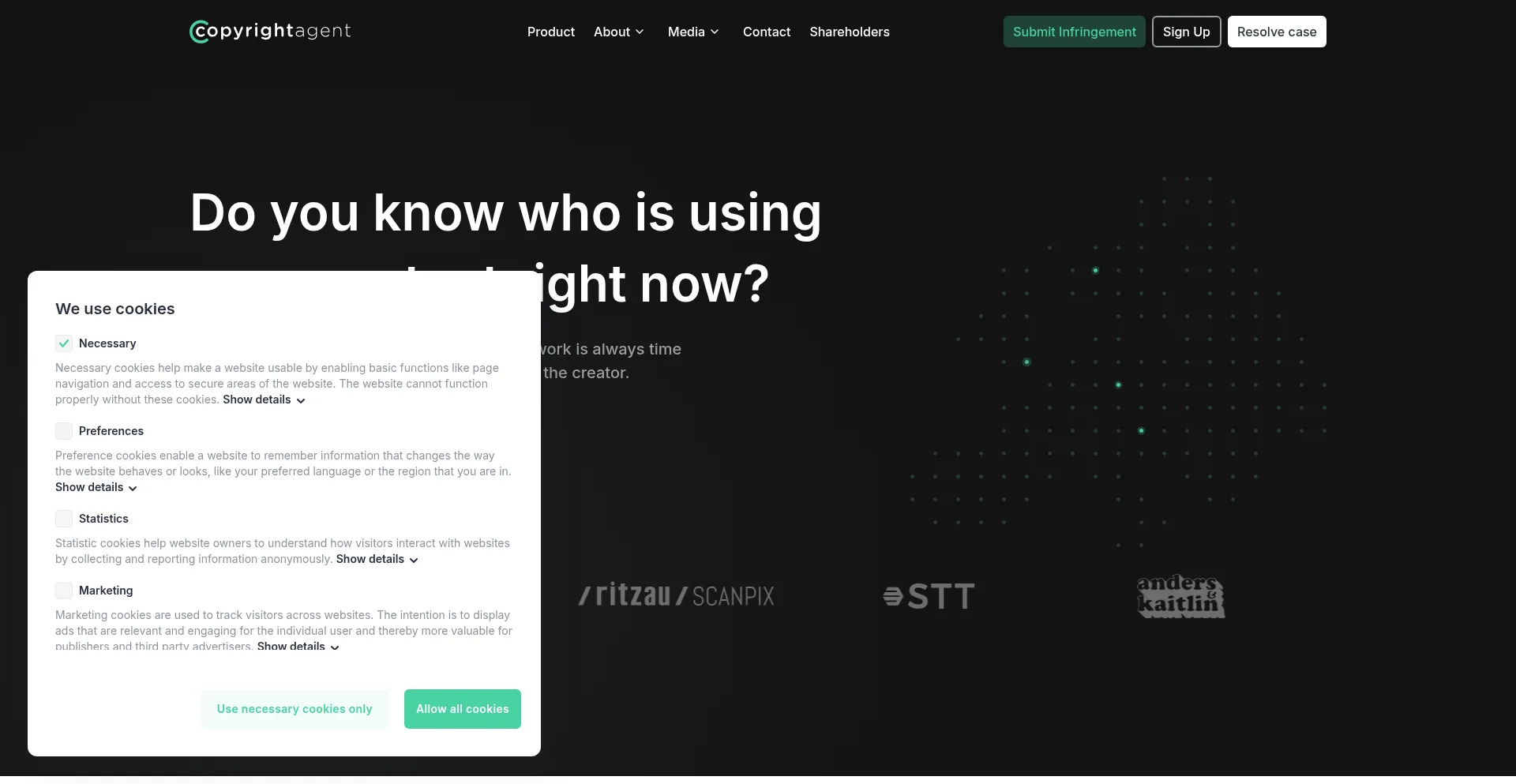 The website implements cookie consent mechanisms in compliance with privacy regulations such as GDPR or CCPA. This demonstrates that copyrightagent.com adheres to data protection standards and provides users with control over personal data collection practices.