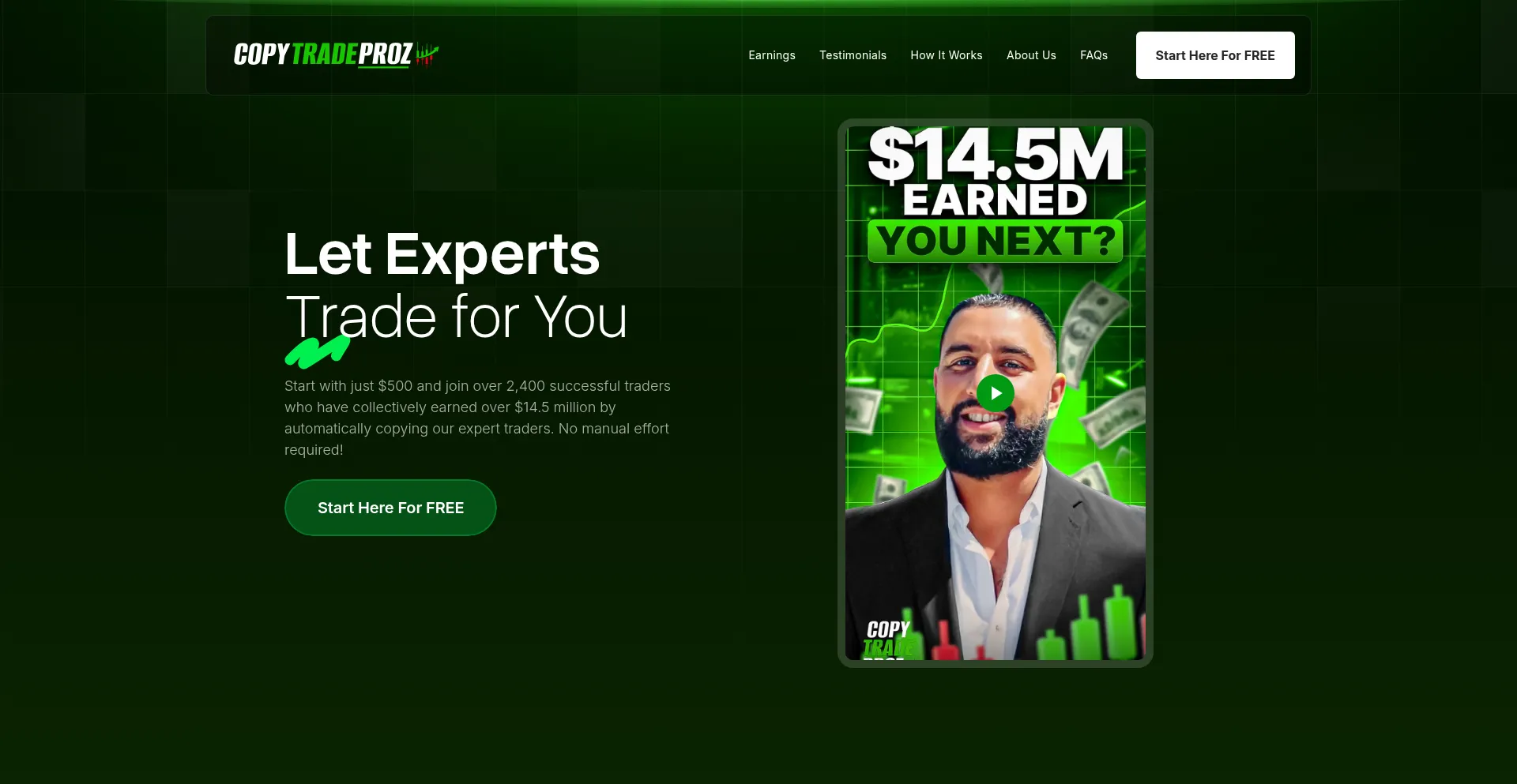 Start with just $500 and join over 2,400 successful traders who have collectively earned over $14.5 million by automatically copying our expert traders.