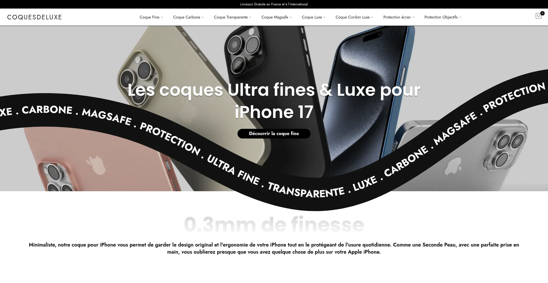 Coquesdeluxe, marque française de coques luxe, cuir, magsafe, ultra fines et transparentes pour iPhone 15, 14 et 13. Pour tous les modèles Pro max, Pro, Plus et Mini.