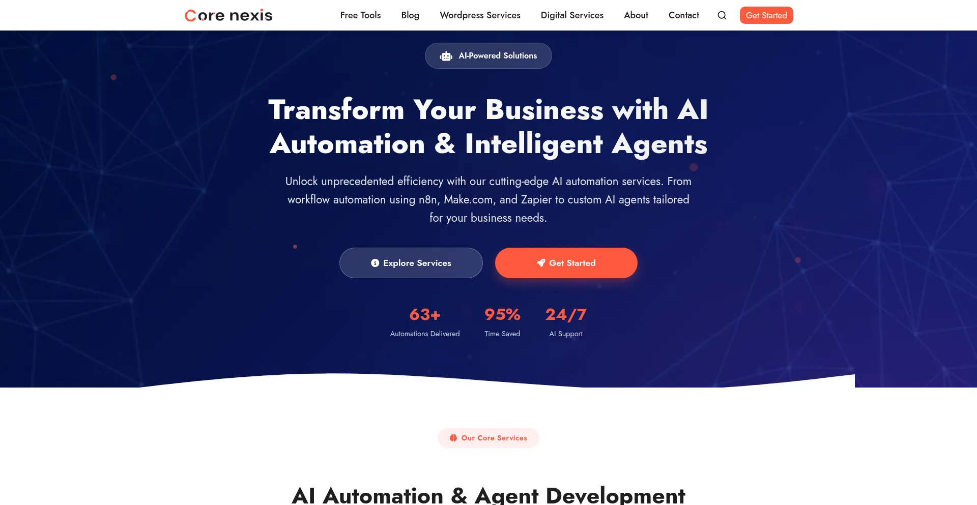 Transform your business with AI automation and intelligent agents. Core Nexis delivers cutting-edge AI solutions, digital tools, APIs, and expert services.