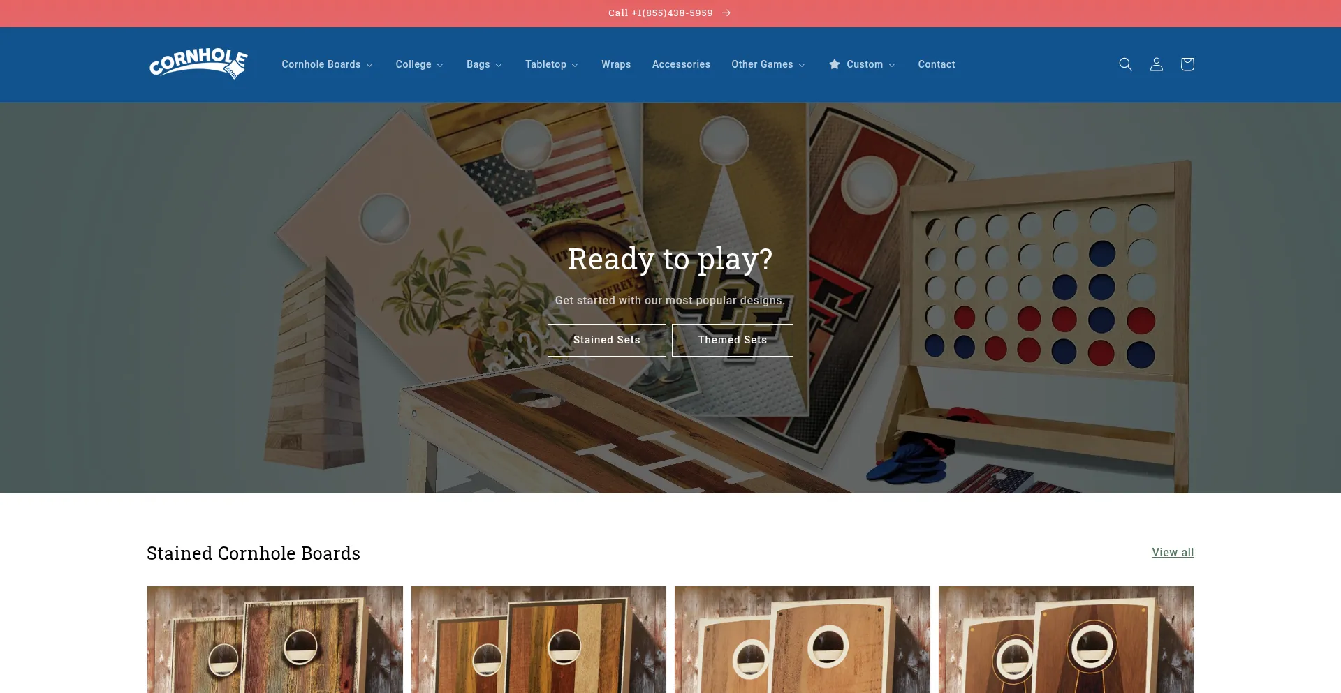 Analysis indicates that cornhole.com operates as an e-commerce platform facilitating online transactions for goods or services. The website implements shopping cart functionality, payment processing systems, and product catalog features typical of commercial retail operations.