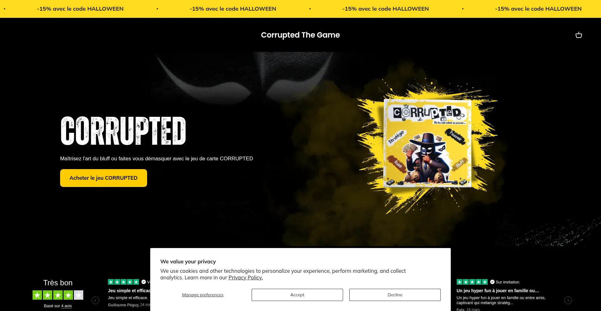 Découvrez CORRUPTED, le jeu de société qui mettra à l'épreuve votre capacité à bluffer, manipuler et dominer vos adversaires. Êtes-vous prêt à entrer dans le monde de ...