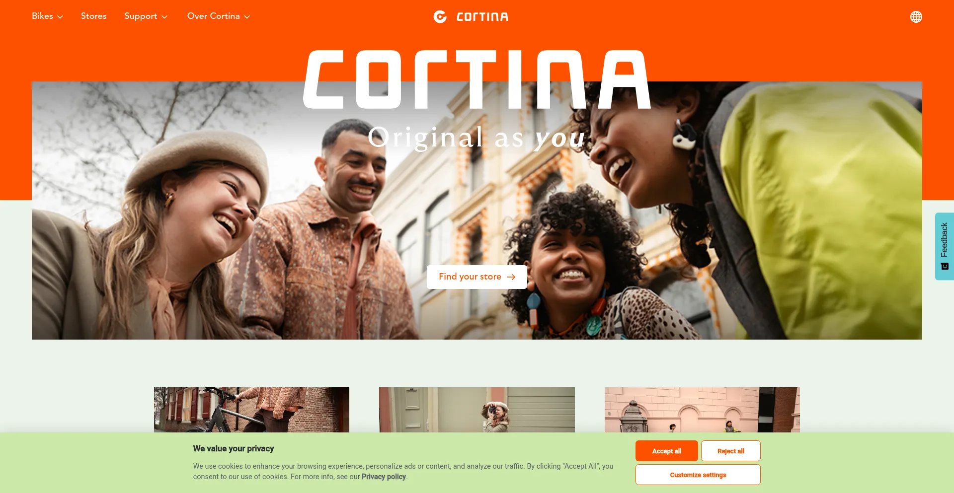 The website implements cookie consent mechanisms in compliance with privacy regulations such as GDPR or CCPA. This demonstrates that cortinabikes.com adheres to data protection standards and provides users with control over personal data collection practices.