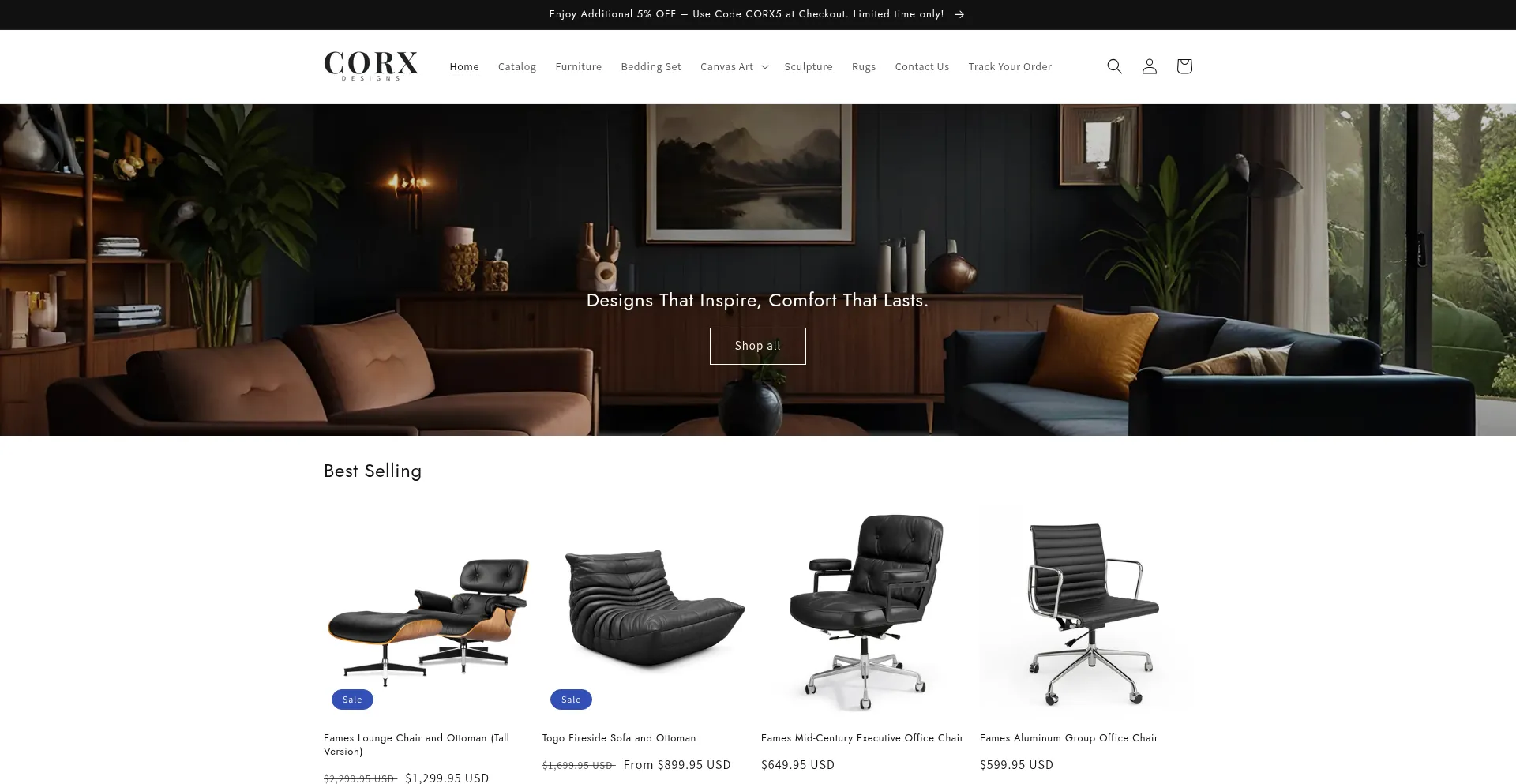 Analysis indicates that corxdesigns.com operates as an e-commerce platform facilitating online transactions for goods or services. The website implements shopping cart functionality, payment processing systems, and product catalog features typical of commercial retail operations.