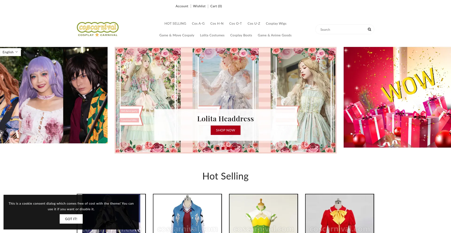 Analysis indicates that coscarnival.com operates as an e-commerce platform facilitating online transactions for goods or services. The website implements shopping cart functionality, payment processing systems, and product catalog features typical of commercial retail operations.