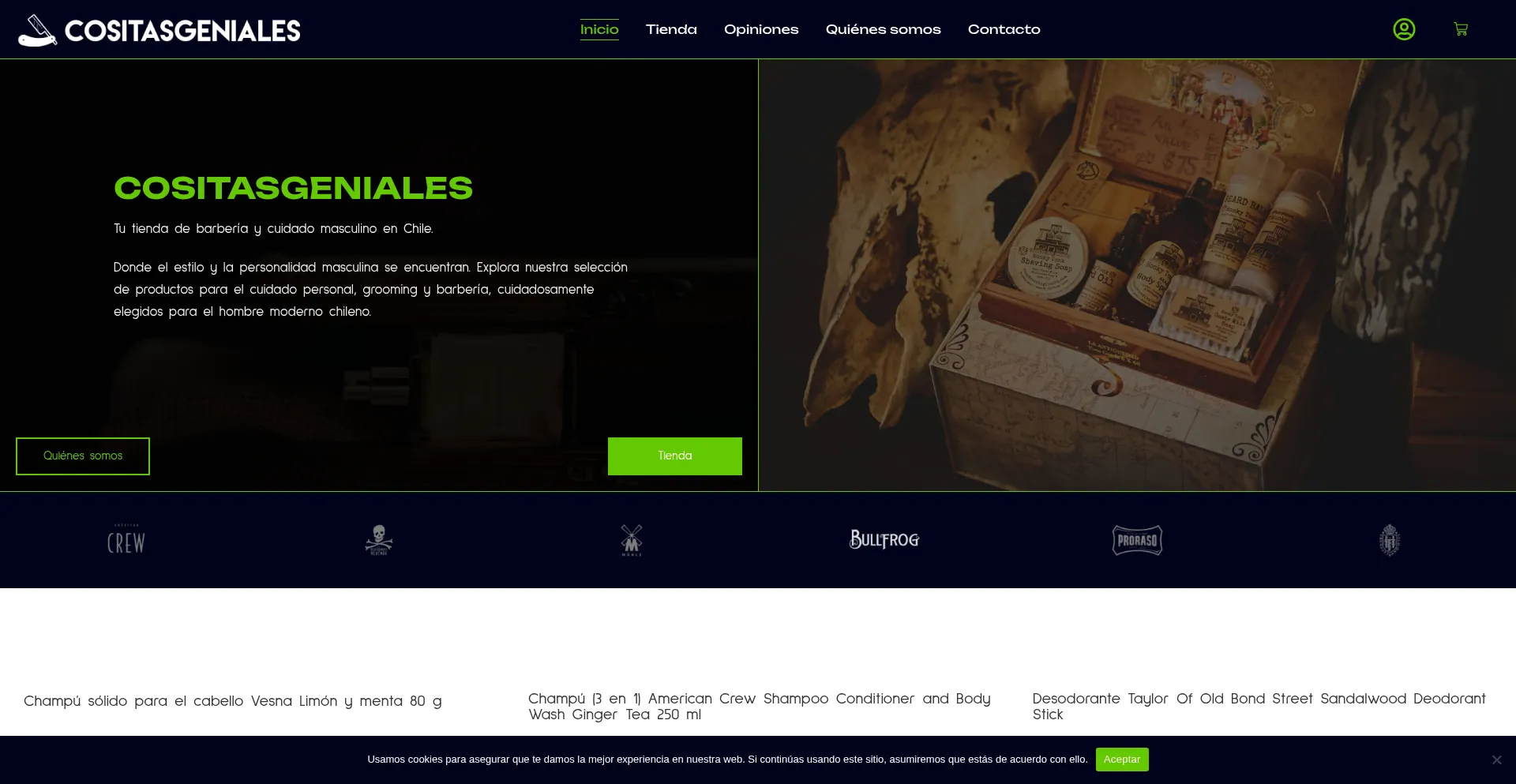 Analysis indicates that cositasgeniales.com operates as an e-commerce platform facilitating online transactions for goods or services. The website implements shopping cart functionality, payment processing systems, and product catalog features typical of commercial retail operations.