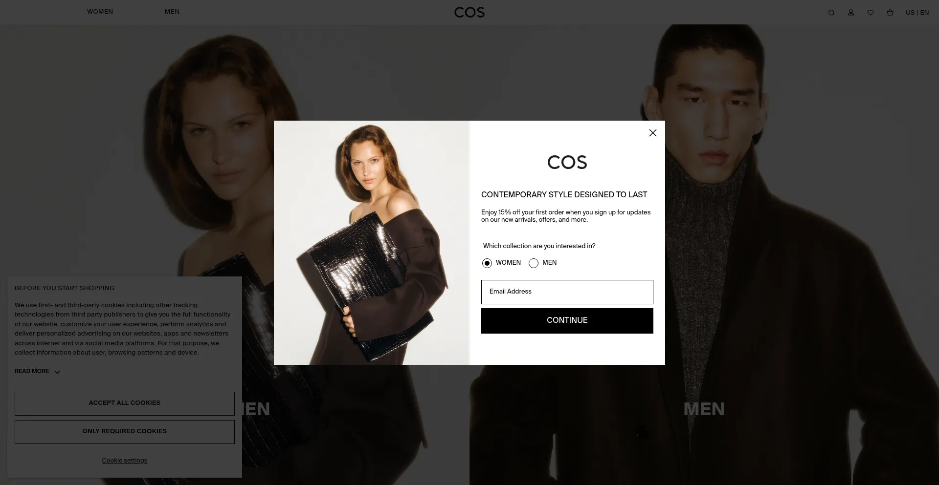 The website implements cookie consent mechanisms in compliance with privacy regulations such as GDPR or CCPA. This demonstrates that cosstores.com adheres to data protection standards and provides users with control over personal data collection practices.