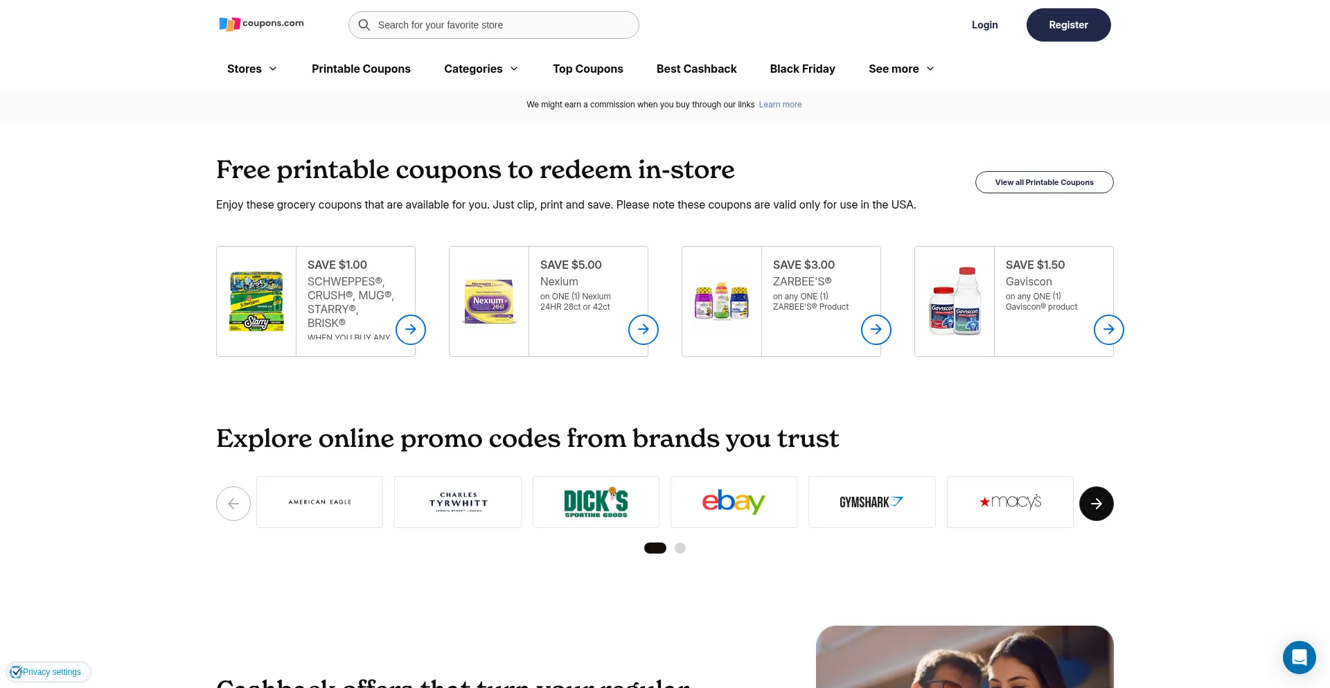 Use Coupons.com for the best coupons and promo codes online and in-store. Save on every order with our verified coupon codes, grocery coupons, and cashback offers.