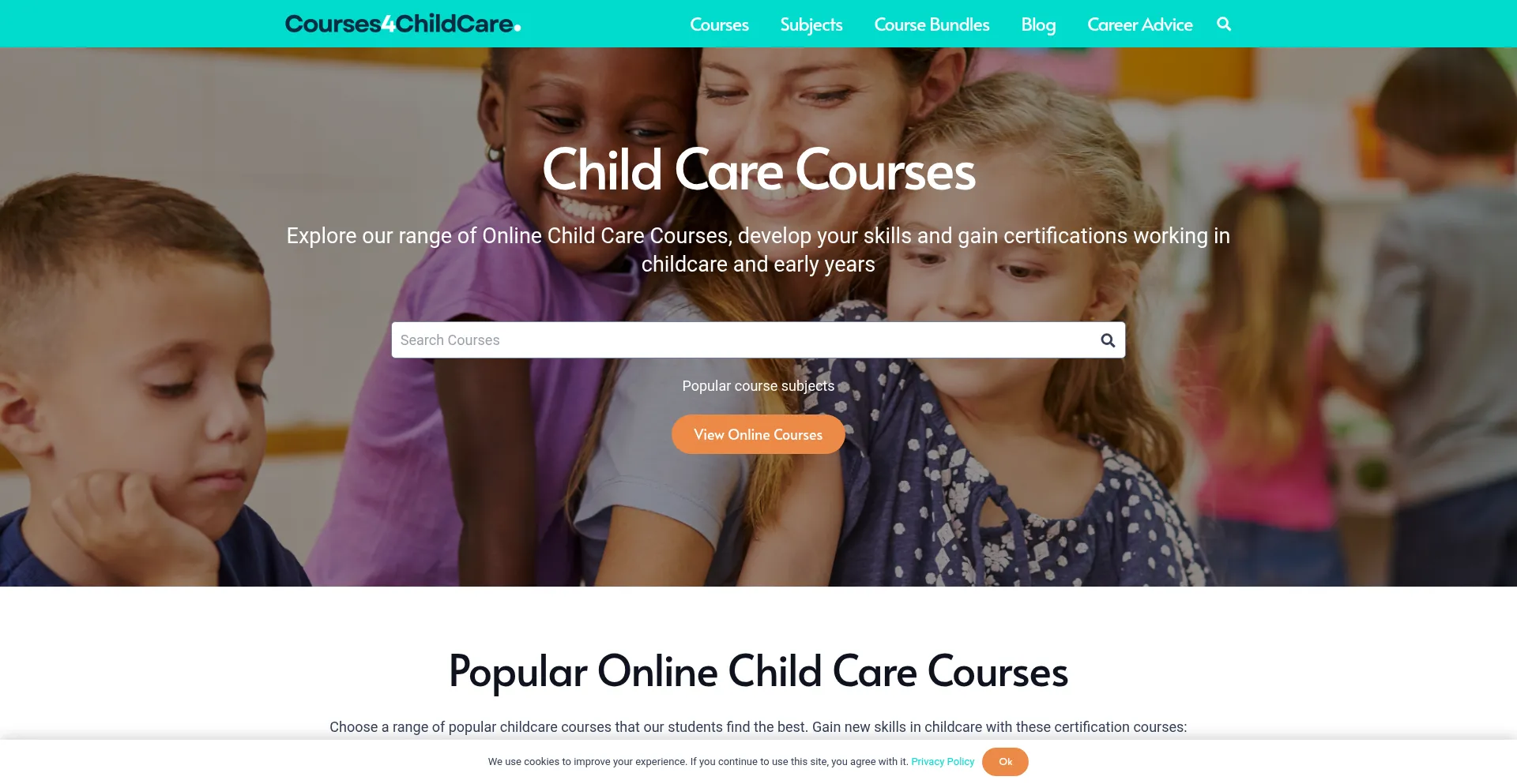 The website implements cookie consent mechanisms in compliance with privacy regulations such as GDPR or CCPA. This demonstrates that courses4childcare.co.uk adheres to data protection standards and provides users with control over personal data collection practices.