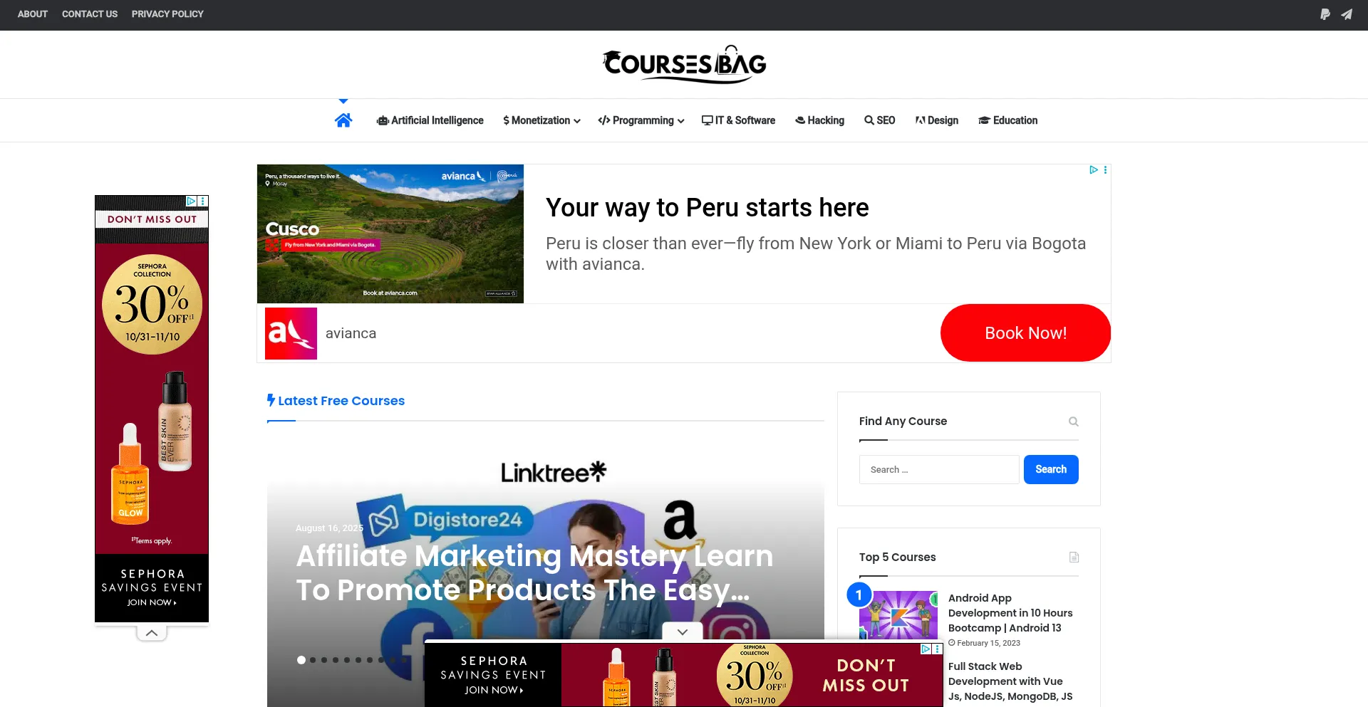 The coursesbag.com website employs search engine optimization (SEO) techniques to improve its visibility and ranking in search engine results pages (SERPs).