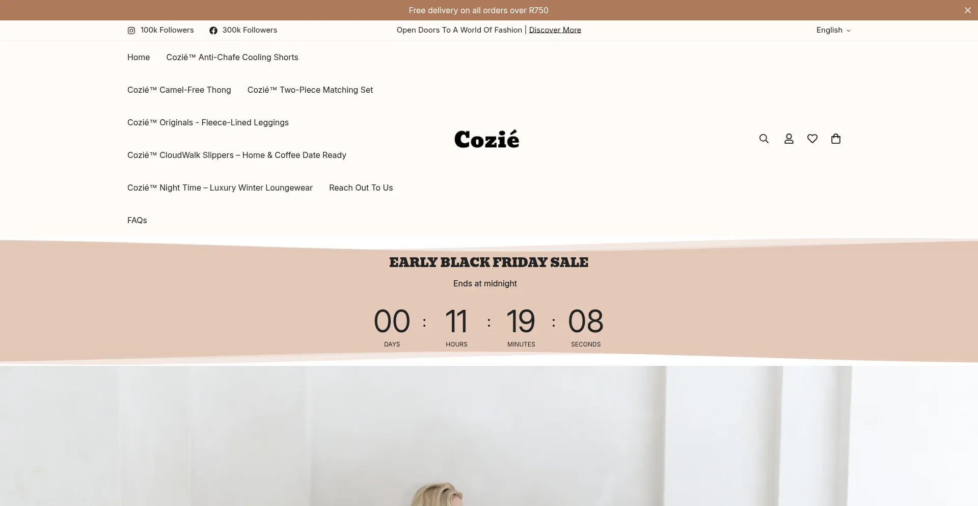 Analysis indicates that cozie.co.za operates as an e-commerce platform facilitating online transactions for goods or services. The website implements shopping cart functionality, payment processing systems, and product catalog features typical of commercial retail operations.