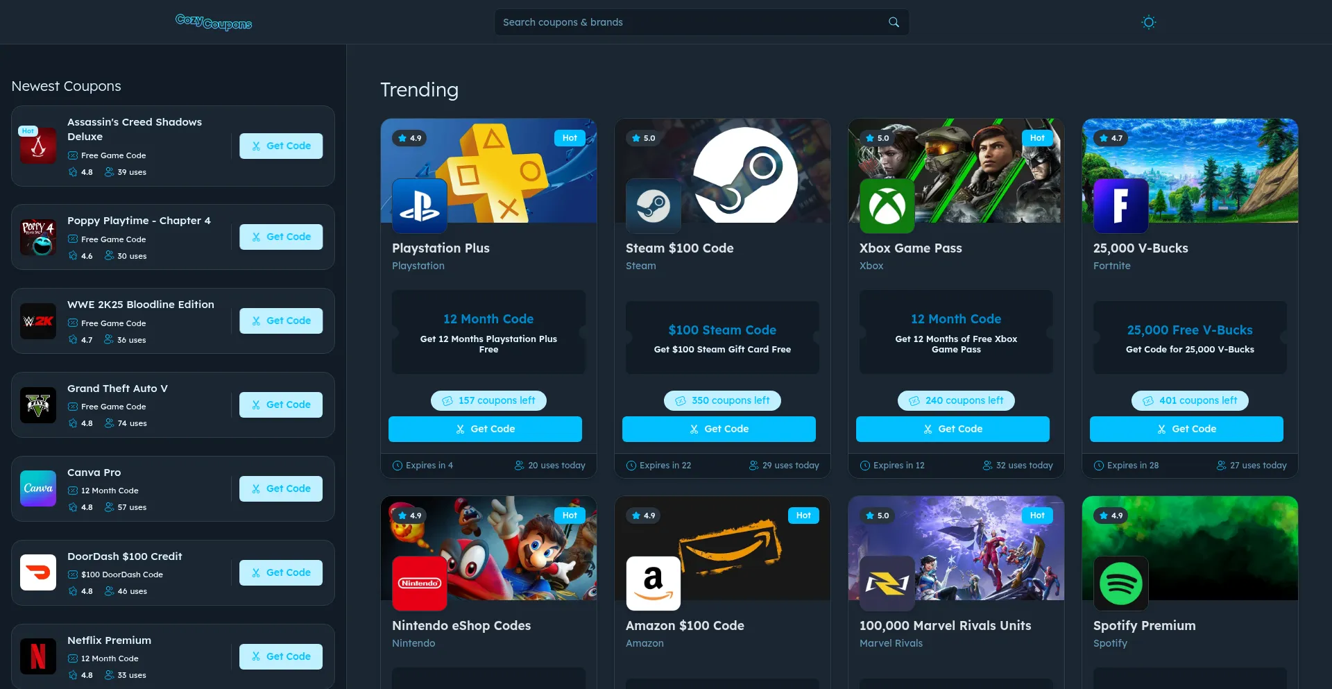 Find the latest coupons, discount codes, and special offers. Save money on your next purchase with verified promo codes.