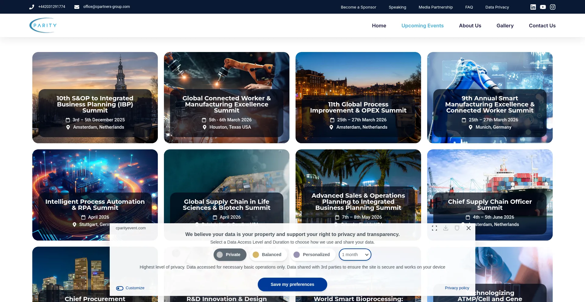 Upcoming Events - Corporate Partners Summits and Conferences
