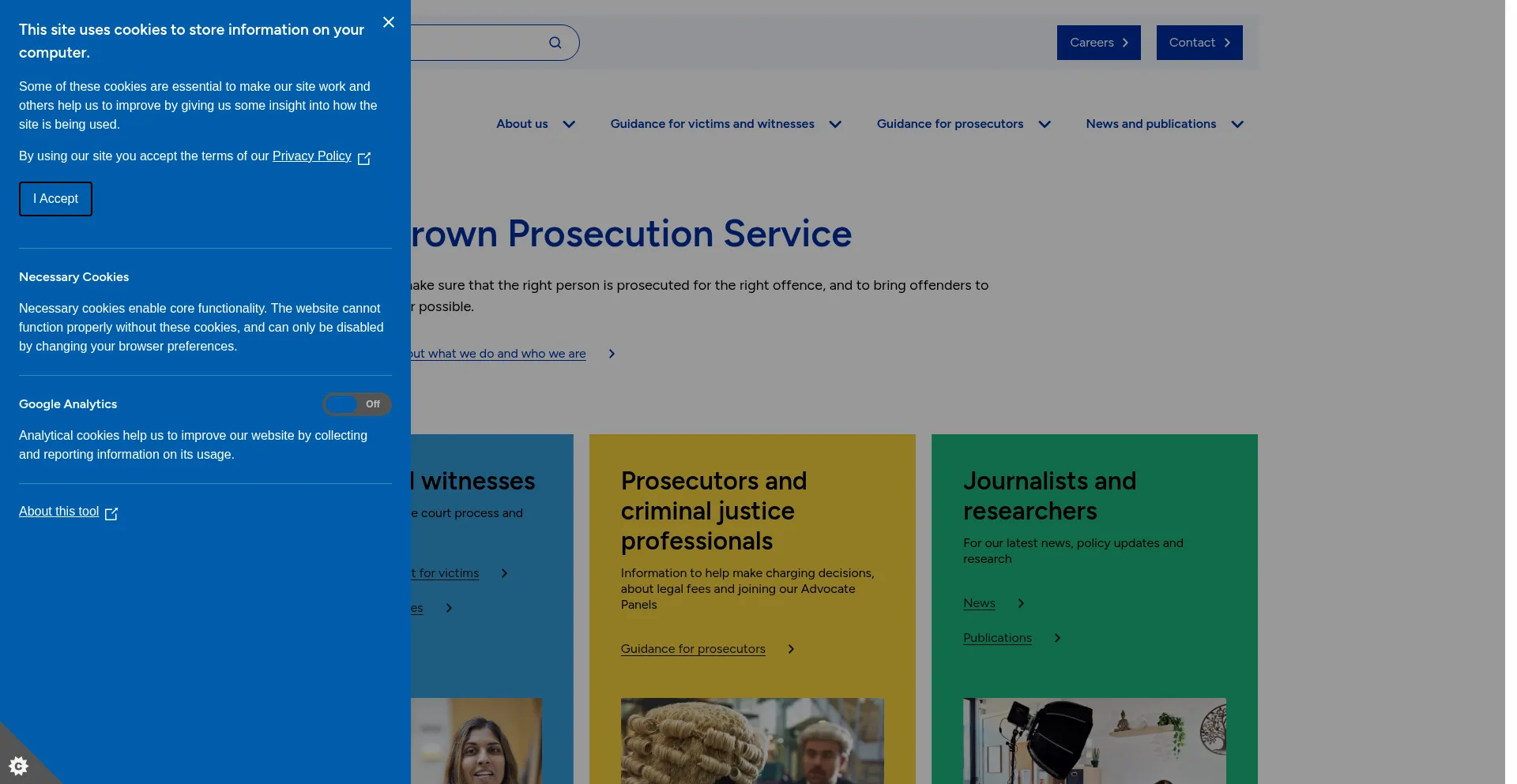 The website implements cookie consent mechanisms in compliance with privacy regulations such as GDPR or CCPA. This demonstrates that cps.gov.uk adheres to data protection standards and provides users with control over personal data collection practices.