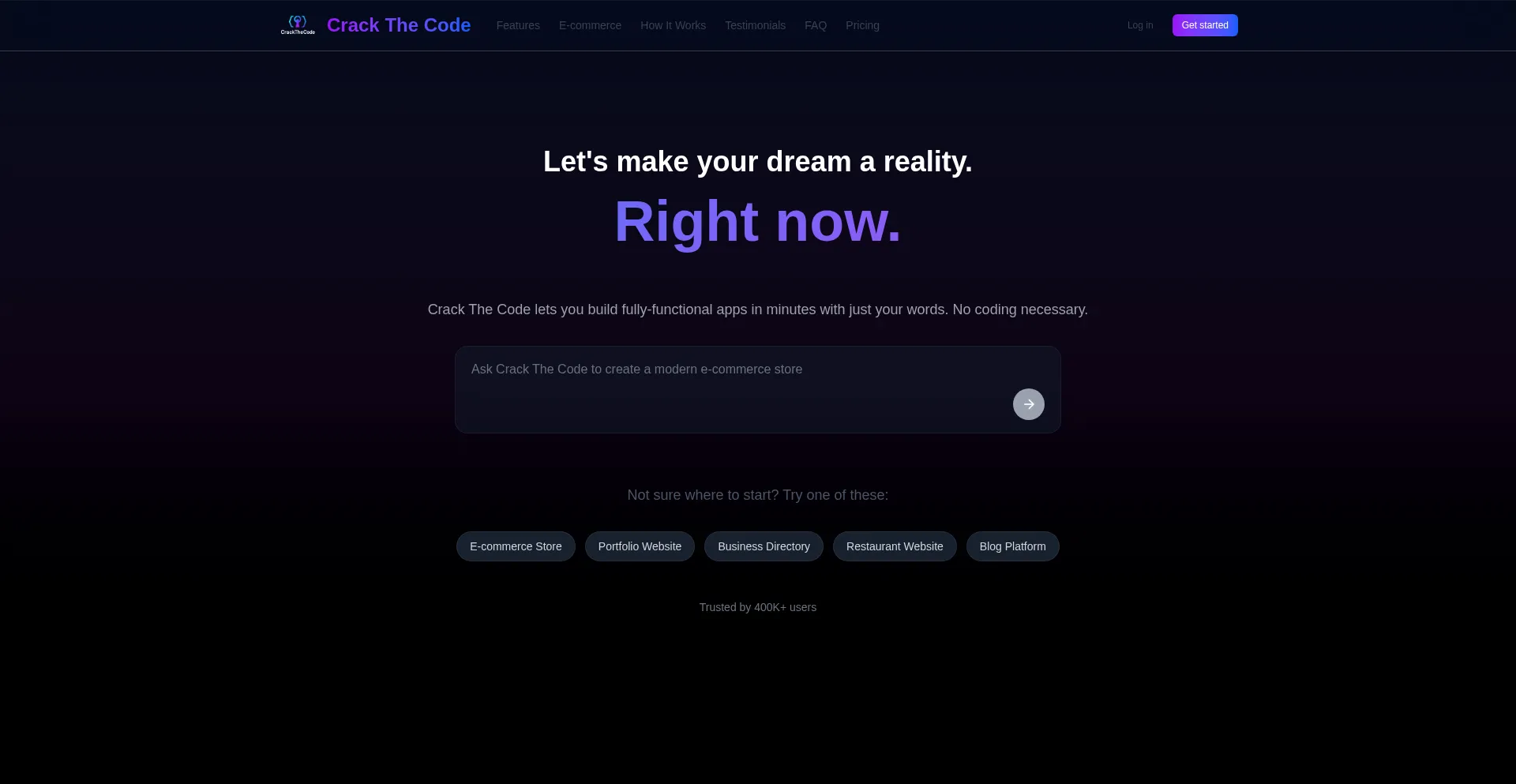 Build your dream website in minutes with Crack The Code's AI-powered platform. Custom-coded websites, not templates.