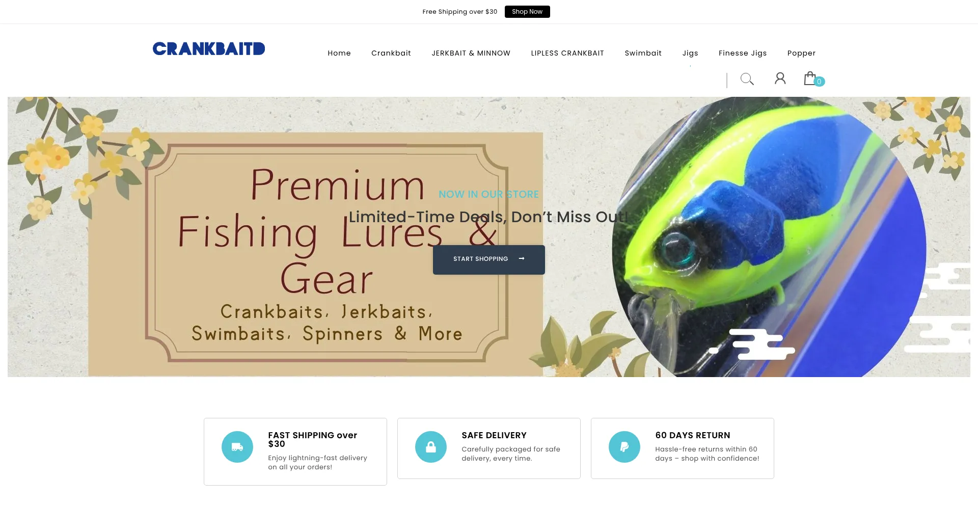 Analysis indicates that crankbaitd.com operates as an e-commerce platform facilitating online transactions for goods or services. The website implements shopping cart functionality, payment processing systems, and product catalog features typical of commercial retail operations.