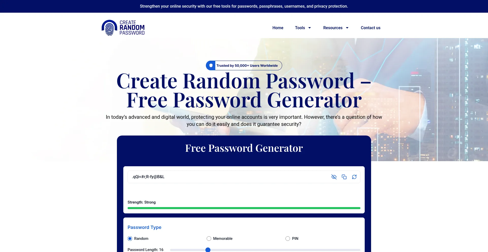 Use Create Random Password to instantly create random password online. Free strong password generator with symbols, numbers, and customizable length.