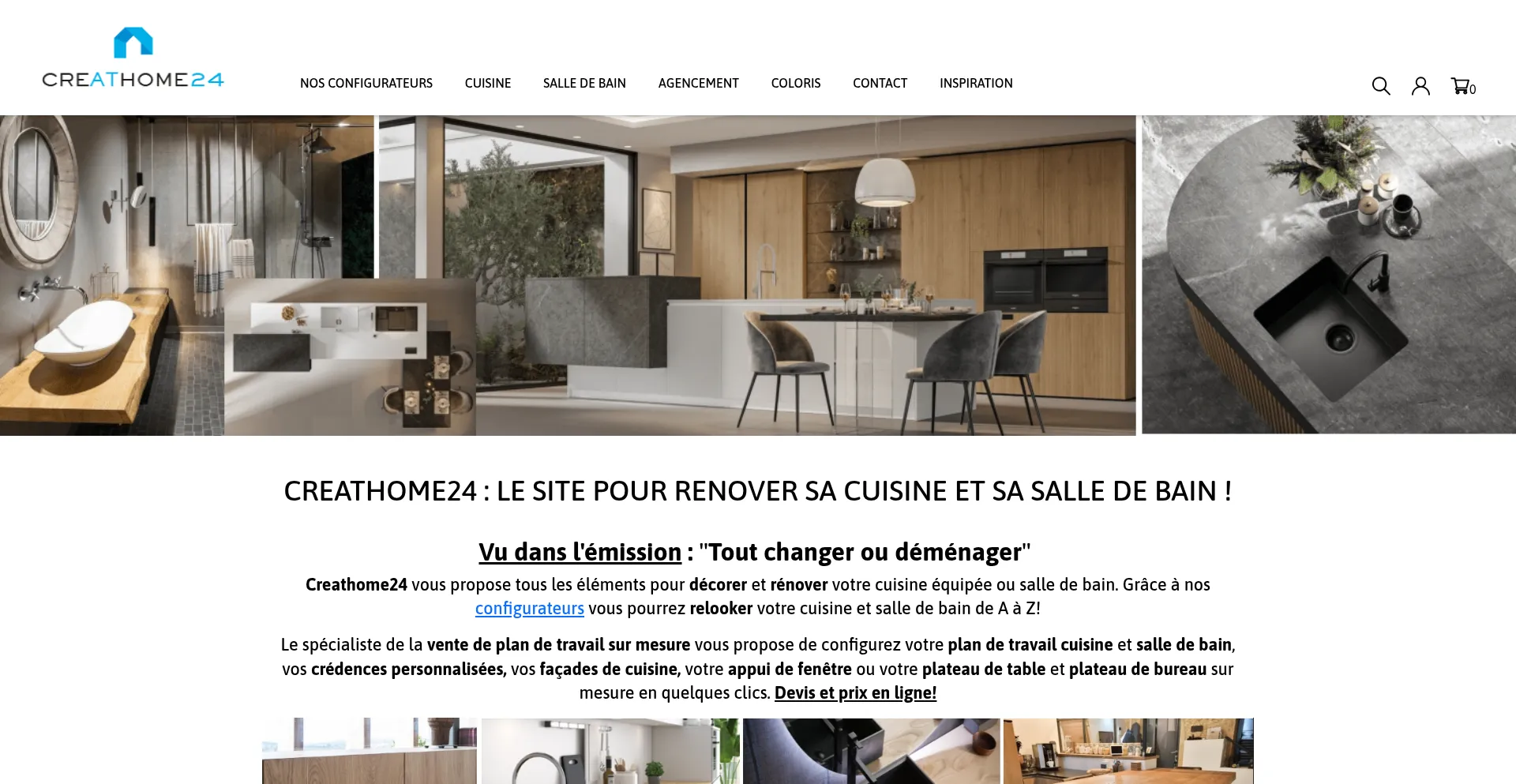 Créathome 24 vous propose tous les éléments pour décorer et rénover votre cuisine équipée ou salle de bain. Grâce à nos configurateurs vous pourrez relooker votre cuisi...