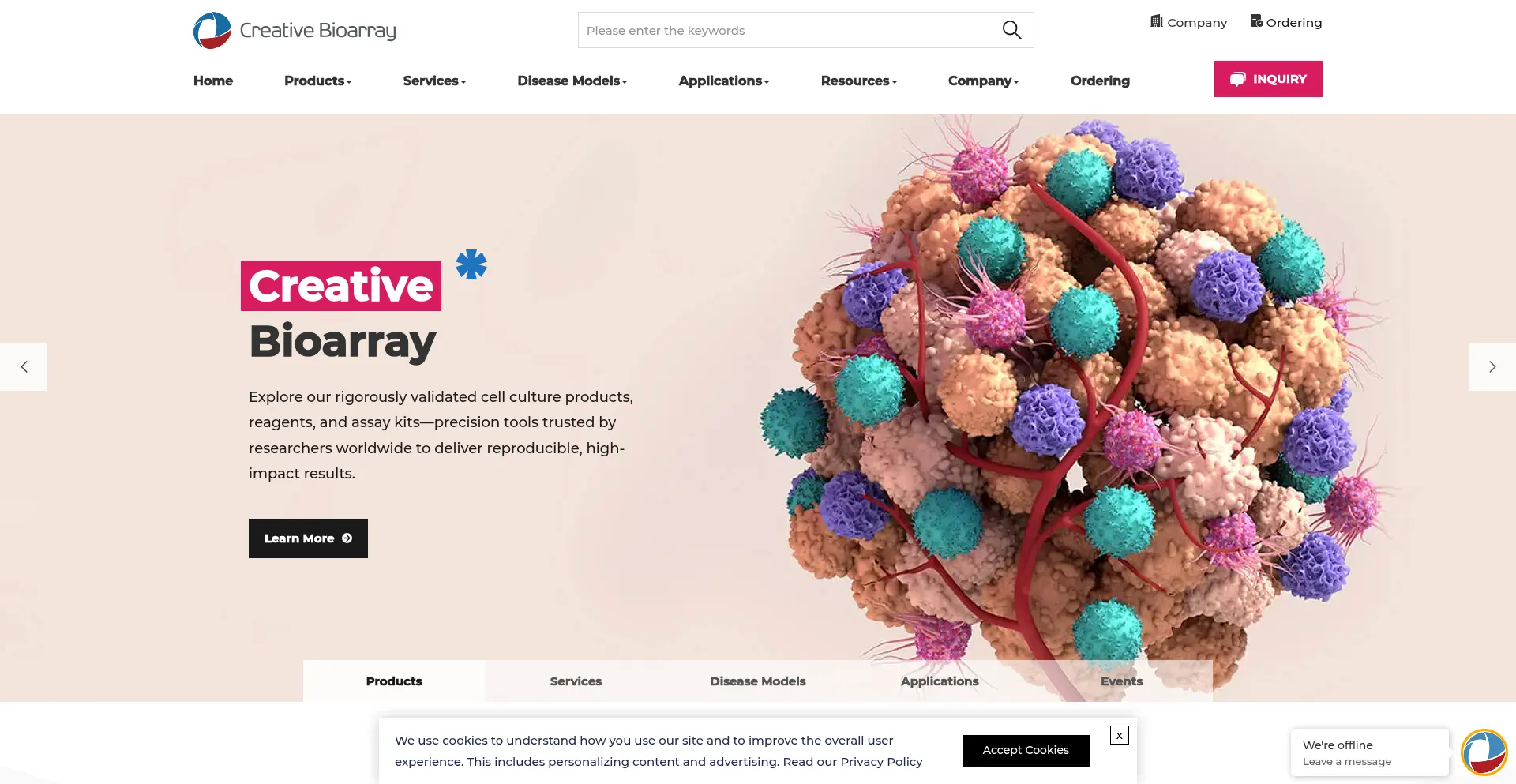 The website implements cookie consent mechanisms in compliance with privacy regulations such as GDPR or CCPA. This demonstrates that creative-bioarray.com adheres to data protection standards and provides users with control over personal data collection practices.