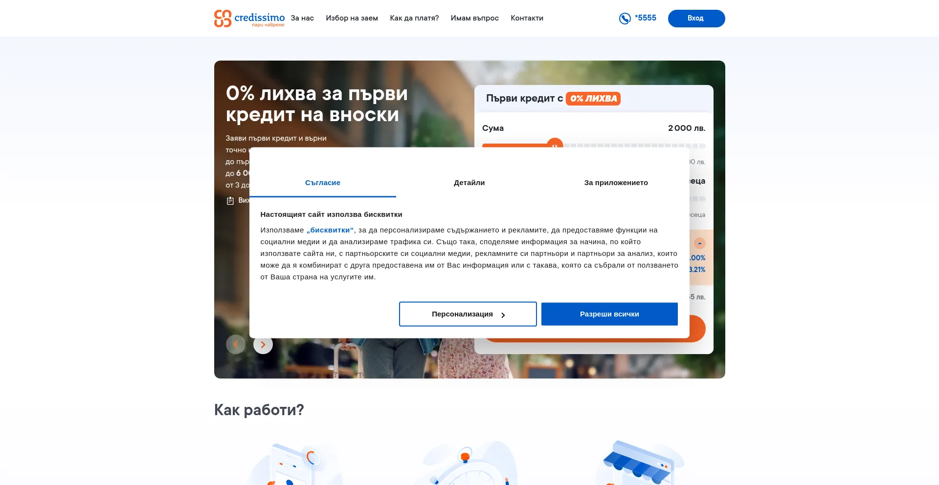 The website implements cookie consent mechanisms in compliance with privacy regulations such as GDPR or CCPA. This demonstrates that credissimo.bg adheres to data protection standards and provides users with control over personal data collection practices.