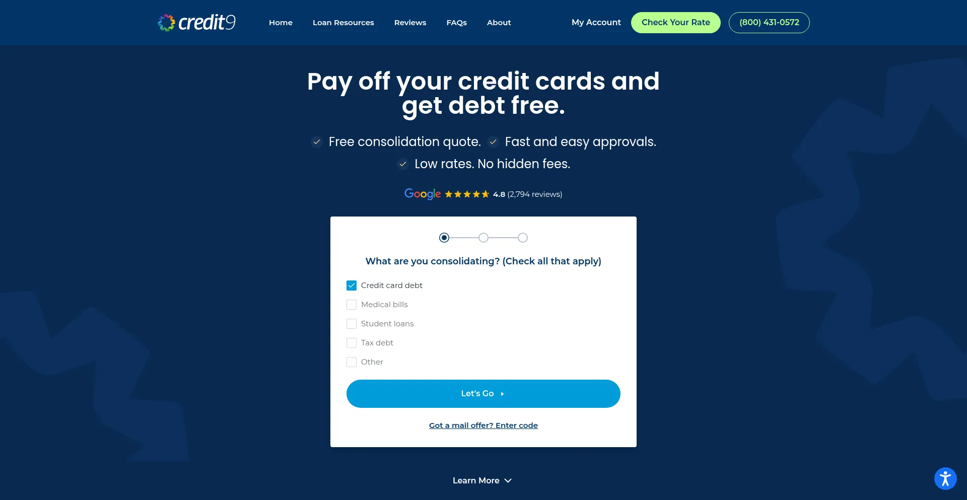 Credit9 helps people nationwide by providing personal loans to consolidate debt at lower rates than your credit cards. Our loans are simple and easy with a single, fixed, and af...