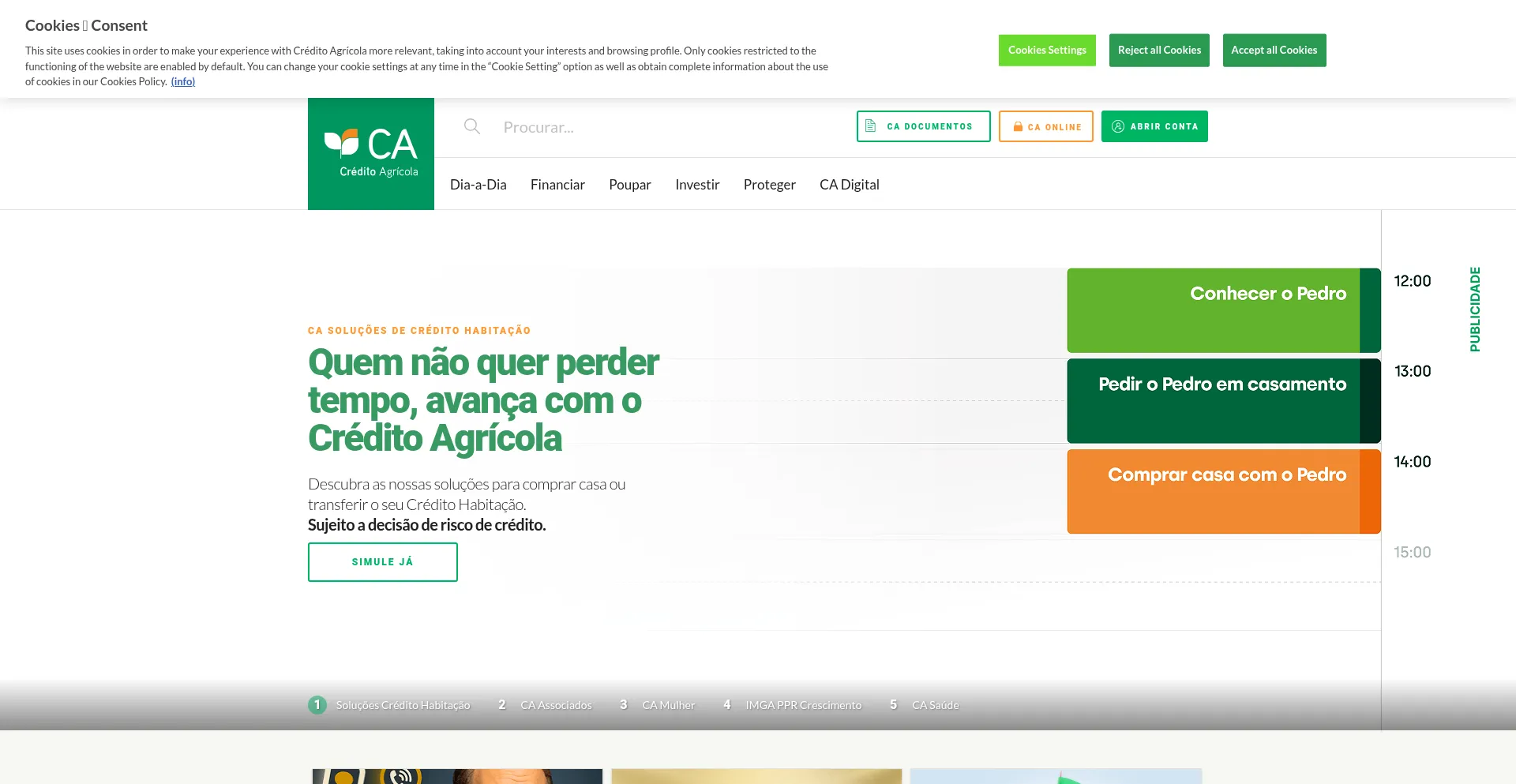 The website implements cookie consent mechanisms in compliance with privacy regulations such as GDPR or CCPA. This demonstrates that creditoagricola.pt adheres to data protection standards and provides users with control over personal data collection practices.