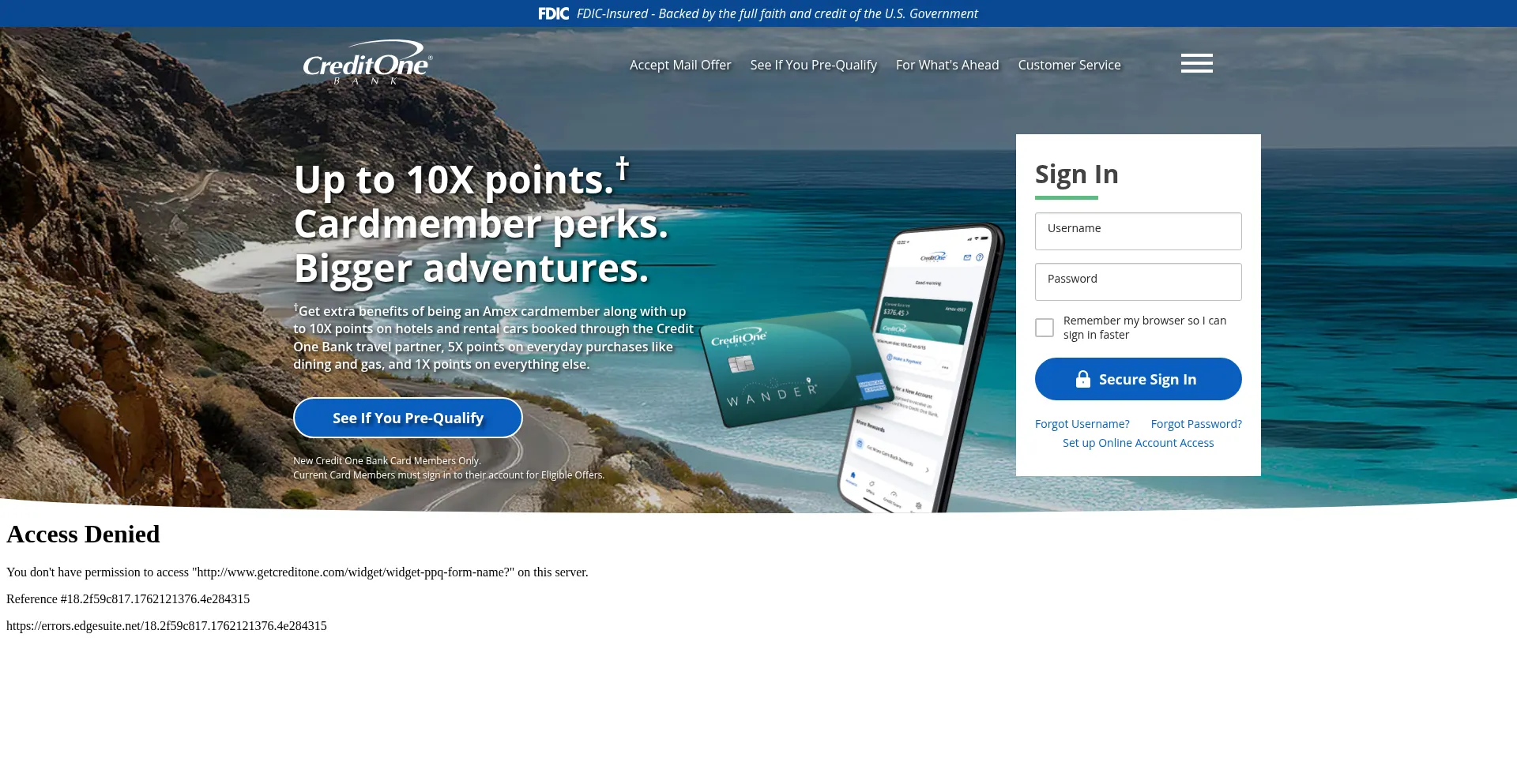 Sign In to Pay Your Bill OR See if You Pre-Qualify for a Credit Card | Credit One Bank
