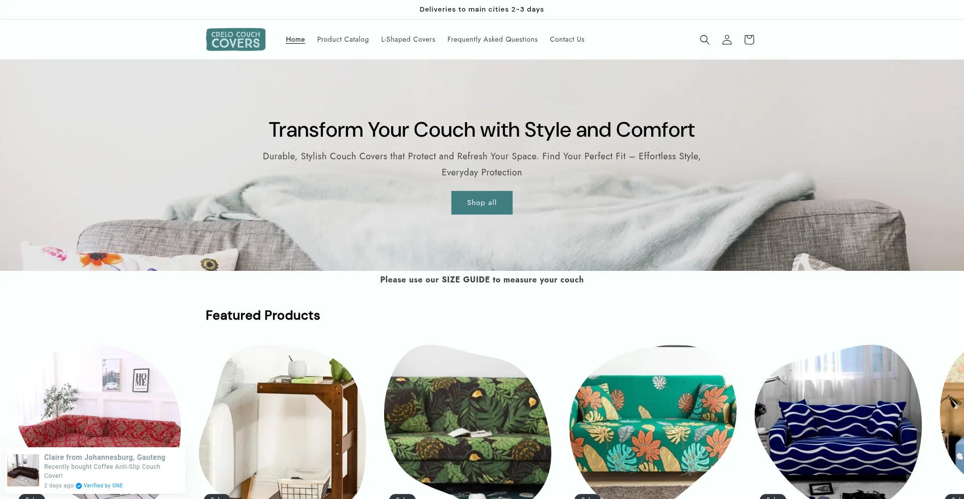 fonts.shopifycdn.com interactions.one.store cdn.shopify.com cdn.prooffactor.com www.shopify.com crelocouchcovers.co.za za.pinterest.com fonts.googleapis.com widget-api.one.store shop.app +10 more