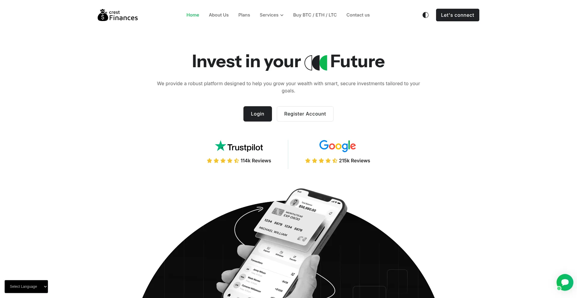 The crest-finances.com website provides financial services including investment management, wealth advisory, or financial planning solutions. Services may encompass portfolio management, investment opportunities, financial consulting, or asset growth strategies for individual and institutional clients.
