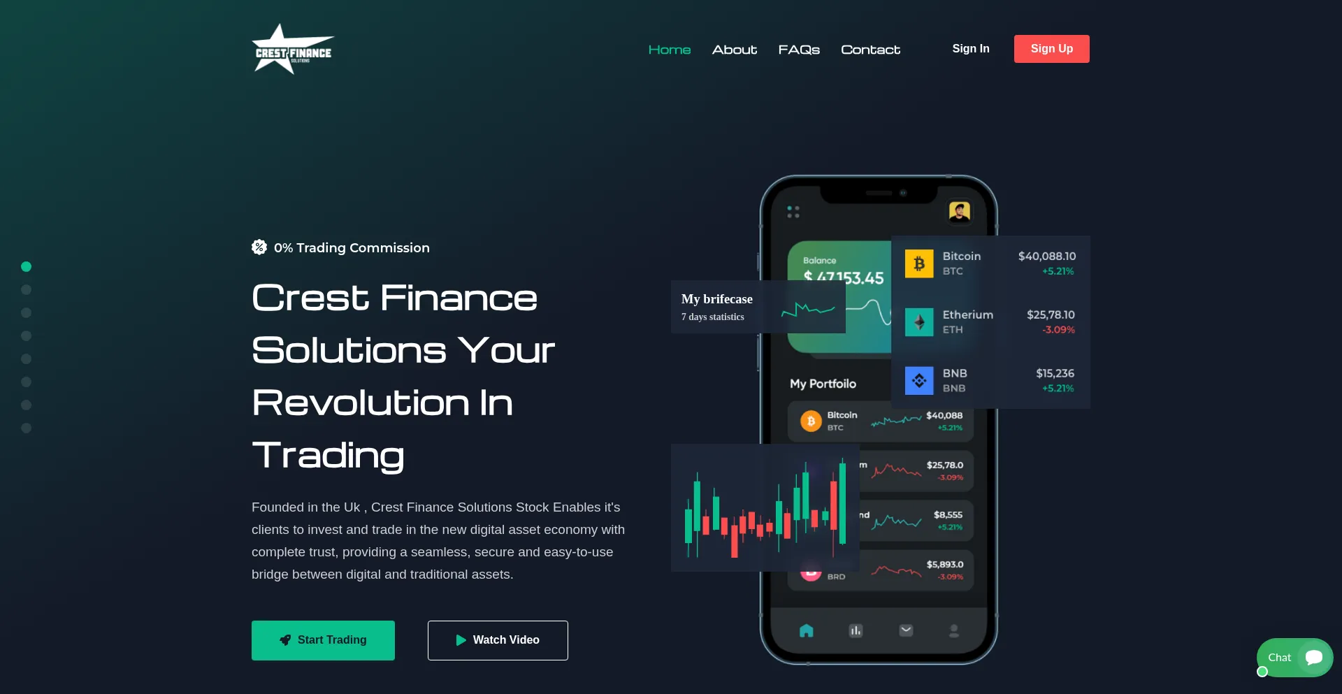 Founded in the Uk , Crest Finance Solutions Stock Enables it's clients to invest and trade in the new digital asset economy with complete trust, providing a seamless, secure an...