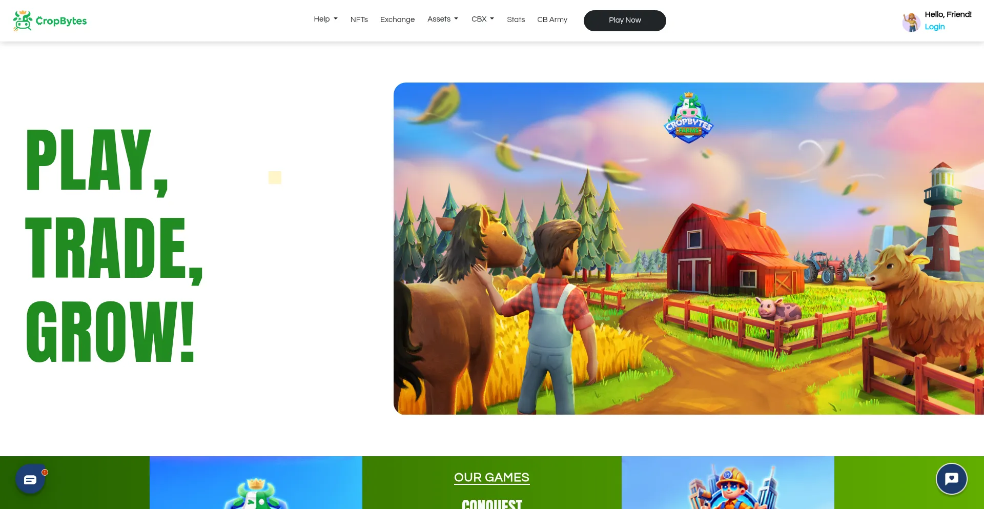 Join the leading crypto game inspired by real-world farming. Cultivate crops, rear animals, and trade assets and NFTs for CBX in the CropBytes economy.