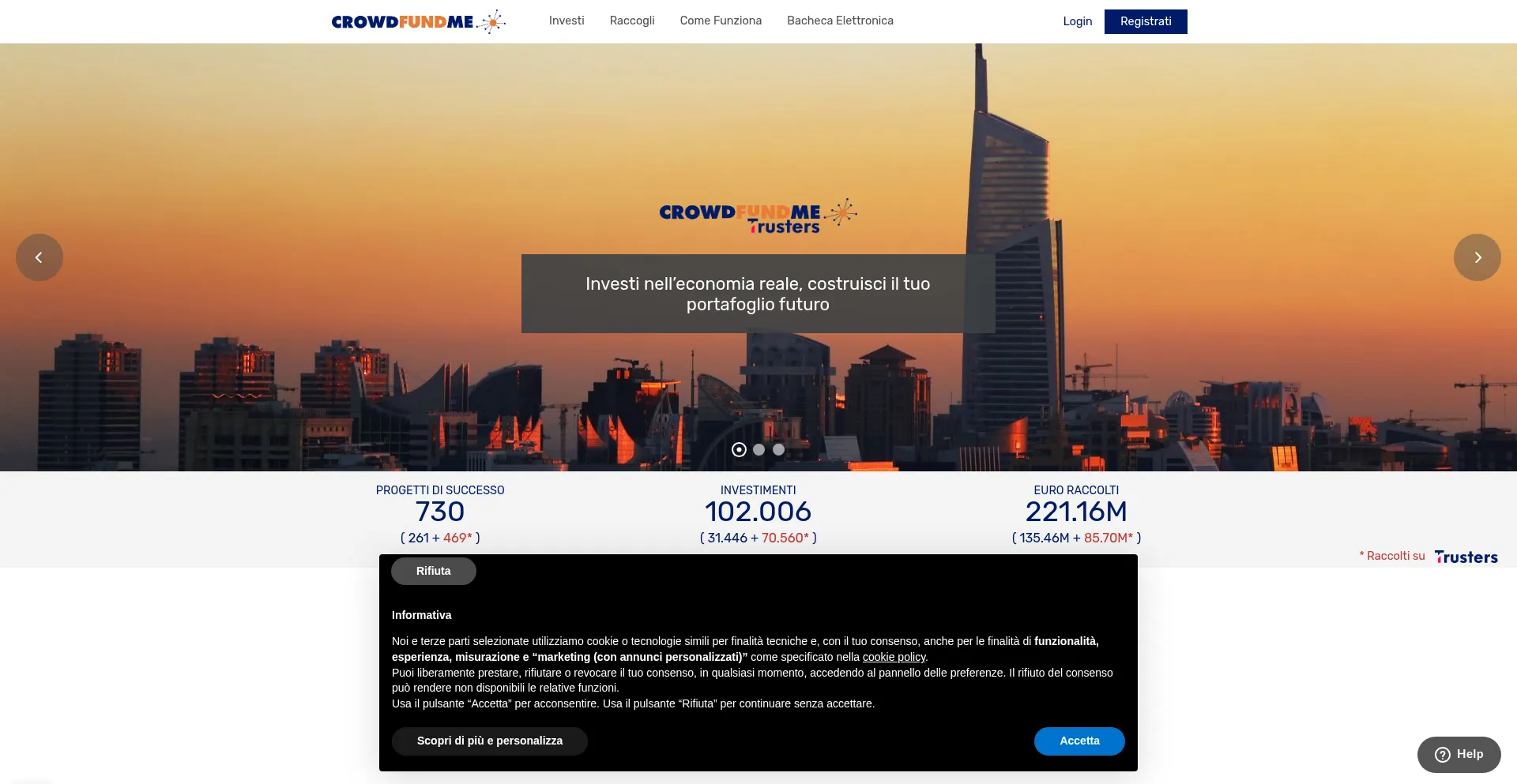 The website implements cookie consent mechanisms in compliance with privacy regulations such as GDPR or CCPA. This demonstrates that crowdfundme.it adheres to data protection standards and provides users with control over personal data collection practices.