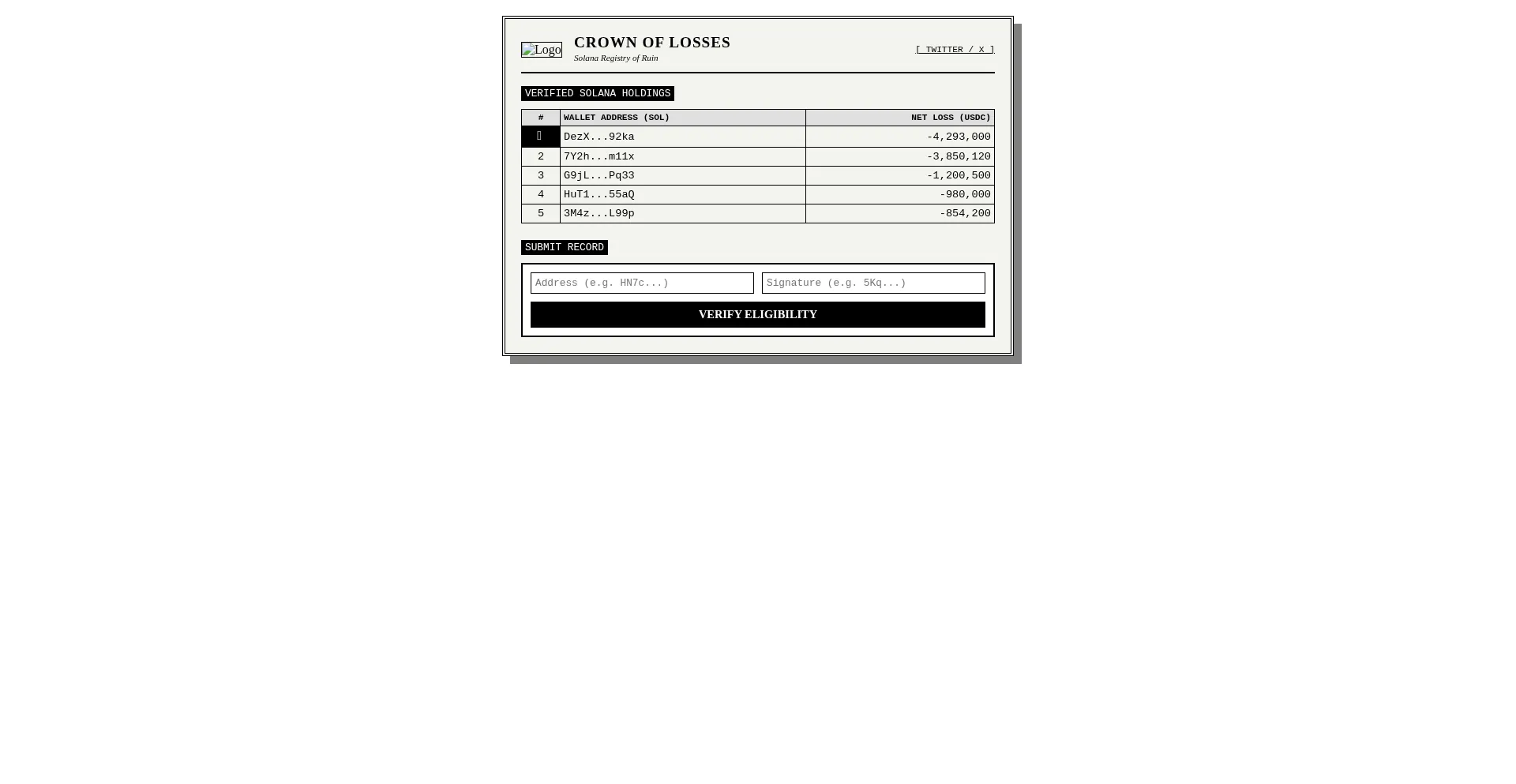 The crown-of-losses.fun website references cryptocurrency transactions or educational content related to digital assets such as Bitcoin, Ethereum, or other blockchain-based currencies. Users should exercise caution as cryptocurrency transactions are irreversible and the decentralized nature of these assets provides limited recourse for fraudulent activities.